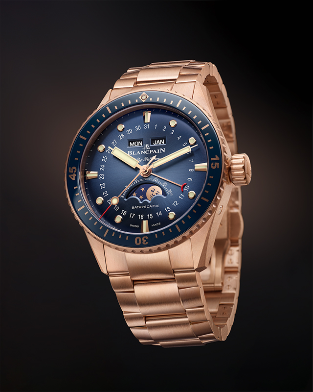 Fashion Blancpain – The Fifty Fathoms Bathyscaphe Goes Full Gold Author Twistedmalemag Date 15. August 2024 Blancpain presents the Bathyscaphe Quantième Complet and Chronographe Flyback models in full Red Gold....