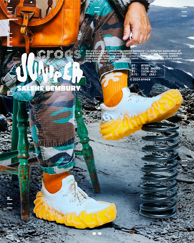 Fashion Crocs launches first sneaker in collaboration with Salehe Bembury Author Twistedmalemag Date 17. September 2024 Crocs and Salehe Bembury continue their successful path with the Juniper sneaker, a new...