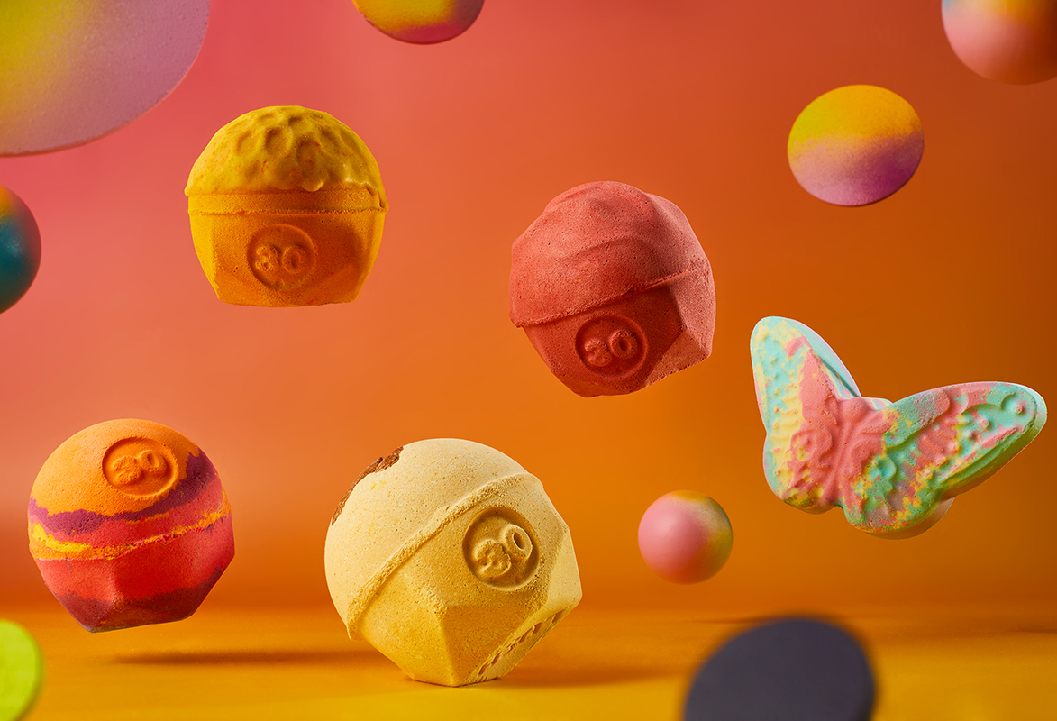 Passend zu unserem 30-jährigen Jubiläum ist jede Badekugel dieser neuen Kollektion einen speziellen 30-Stempel versehen. Die Kollektion enthält Badebomben-Favoriten der Kund*innen, die ein Makeover bekommen haben, Badekugeln mit viralen Bestseller-Düften wie Sticky Dates oder Super Milk sowie neue Badekreationen. Sogar eine neue und besondere Badebombe aus einer Markenkooperation ist Teil der neuen Reihe: die E.T.-Badebombe.
