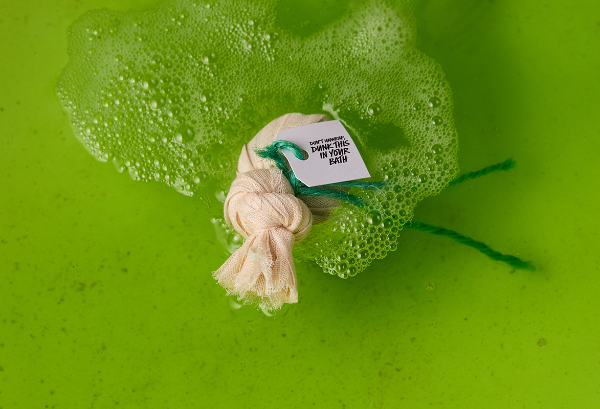 Nicht auspacken, eintunken! Belebe deine Sinne mit Pfefferminze und Matcha. Sobald der Sprudel fertig ist, tupfst du den Musselinbeutel über deine Haut und genießt die erfrischende Wirkung.