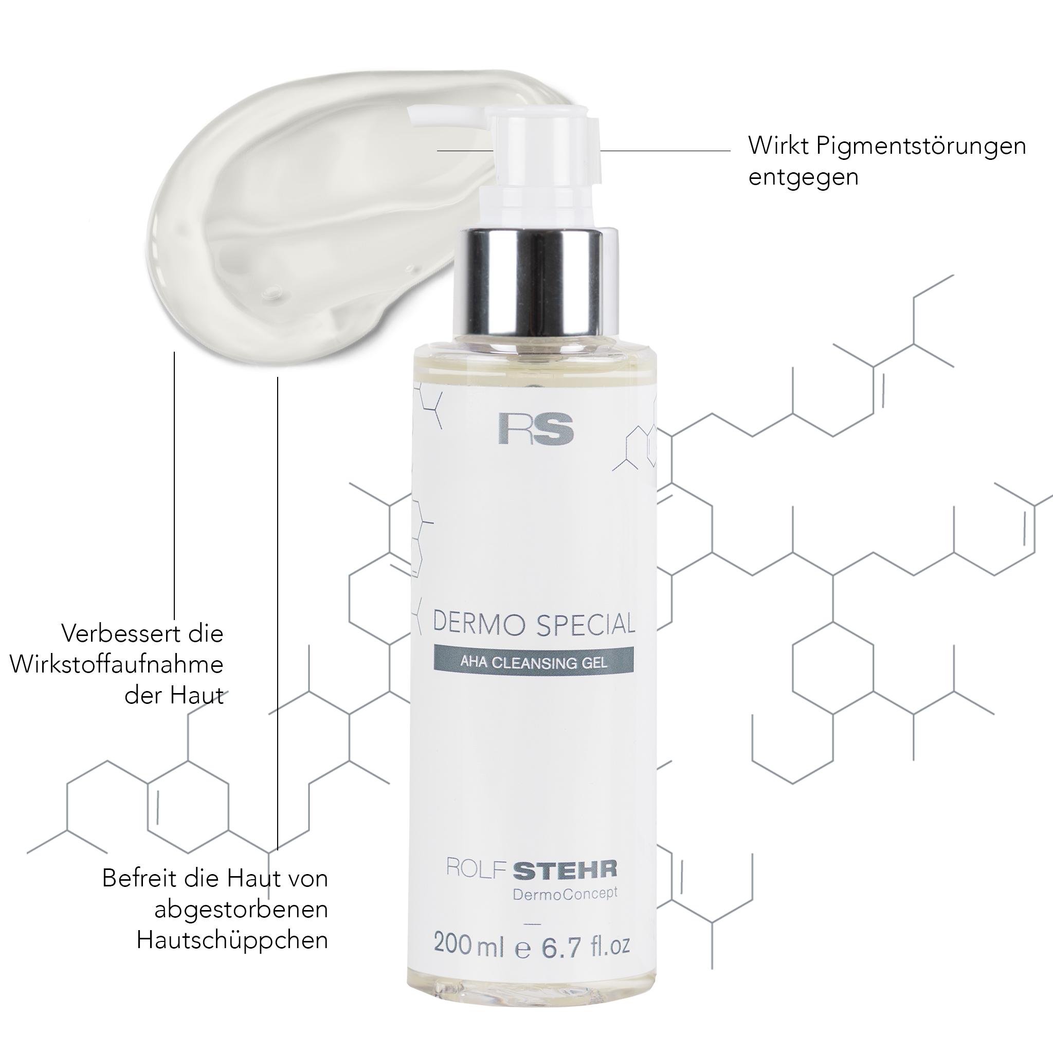 Müder Teint und fahler Glow gehören ab sofort der Vergangenheit an: AHA Cleansing Gel aus der exklusiven „ROLF STEHR Dermo Special“-Pflegeserie verwandelt die tägliche Gesichtsreinigung in einen effektiven Pflege-Boost. Die hochwertige Formulierung auf Basis eines natürlichen Fruchtsäure-Komplexes entfernt sanft abgestorbene Schüppchen, verfeinert das Hautrelief und schenkt einen frischen, klaren Look. Unreinheiten, Pigmentflecken sowie feine Linien und Fältchen erscheinen sichtbar reduziert – für einen strahlenden, vitalen Teint.