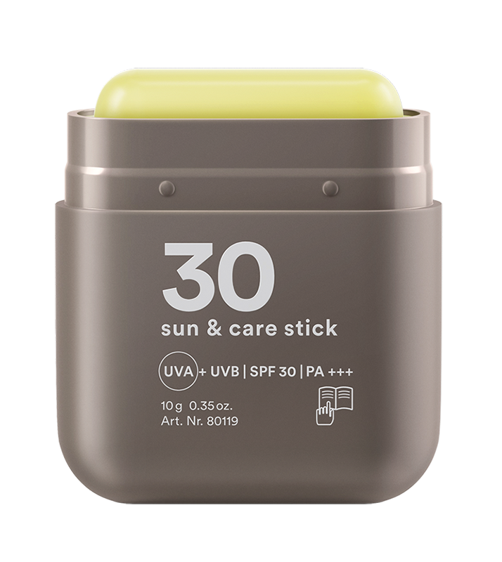 Schritt 3: UV-Schutz ist auch im Winter unverzichtbar: In den Bergen ist die UV-Strahlung deutlich intensiver und wird zusätzlich durch den Schnee reflektiert – auch an bewölkten Tagen. Der sun & care stick SPF 30 oder das sun protect+ SPF 50 schützen Nase, Wangen und andere exponierte Partien zuverlässig und passen perfekt in jede Tasche für ein schnelles Touch-up zwischendurch. Tipp: Der sun & care stick kann auch auf die Lippen aufgetragen werden, für extra Schutz und geschmeidige Lippen.