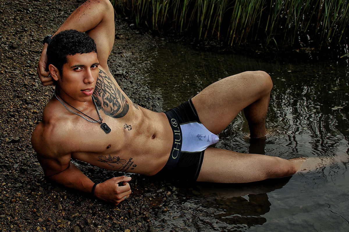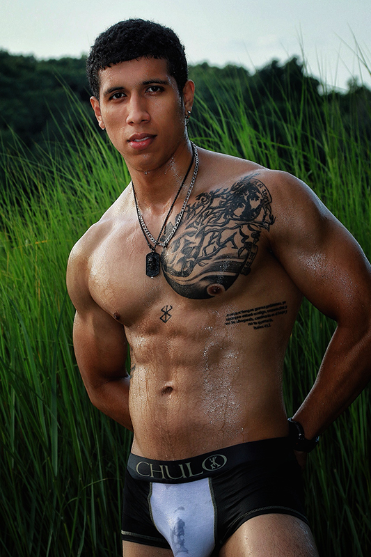 „CHULO is one of our favorite brands because the small US company was founded by educators, community activists and artists as a fun way to raise money for marginalized young people. CHULO donates its profits directly to communities in need. They have donated money and/or gear and/or food to two youth boxing programs, a teen shelter for homeless LGBTQIA young people, a dance program for youth, a reading program, an environmental justice organization, several health programs, and to many college scholarship programs to help young people pay for their books or tuition. Everybody on the CHULO staff is a volunteer. That is so great. We also love CHULO because their models are exotic and handsome. Here is their latest model, Anthony, who was born in Ecuador. Anthony used to work in construction, but he discovered that working as a dancer brought in more money for his family. When he’s not dancing, Anthony enjoys working out and hanging out with family and friends. Here are some shots of Anthony wearing the latest CHULO gear. Leave a comment. Let us know what you think.“
