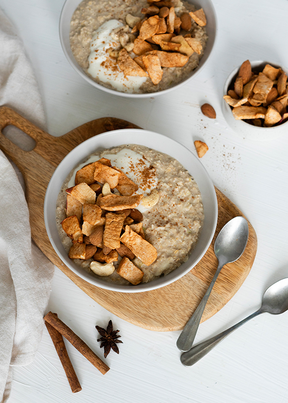 buahs Apfel-Zimt inspiriert zu kreativen Herbstrezepten und kulinarischen Genussmomenten. Ein cremiger Porridge ist beispielsweise perfekt für einen energiereichen Start in den Tag. Schnell, unkompliziert und ausschließlich aus natürlichen Zutaten zubereitet, eignet sich der Apfel-Zimt-Porridge auch als wohltuende Zwischenmahlzeit oder veganes Dessert – ganz ohne Reue dafür mit reichlich Genuss.