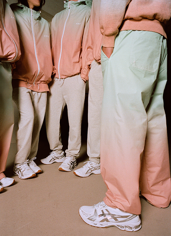Judith Touitou, Creative Director at A.P.C. said: “With this collection, we tried to achieve the purest silhouettes possible so as to focus on the beauty of the sportive gesture achieved by ASICS athletes on their way to success. We also wanted to translate this spirit in everybody’s lifestyle, adding also a touch of playfulness brought by our gradient print on nylon pieces.”