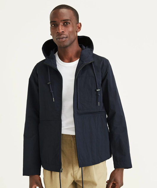 A jacket that you can wear from the gym to the office and vice versa. Often lightweight and breathable but may also contain material that will protect from rain, wind, etc. These are usually common in darker colours so that they can match more outfits.