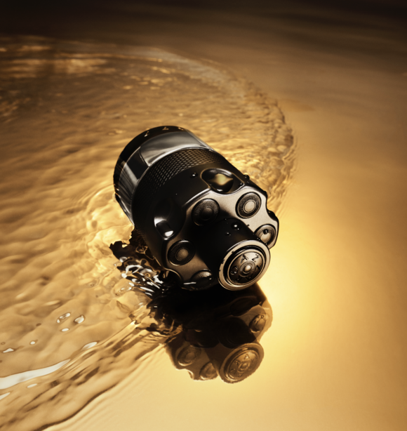The iconic bottle has been reinterpreted and stands for masculinity and elegance. Its smooth black metal surface and the interplay of smoky color gradients on the bottle evoke an air of mystery and reflect the essence of bold masculinity combined with seductive charm.