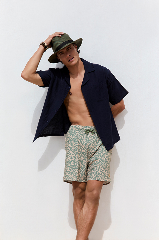 Shorts are the centerpiece of the new season: made from lightweight, breathable materials in navy, beige, olive green, and terracotta, they are mid-length and ideal for swimming or relaxing. Simple, comfortable designs create effortless looks that are easy to mix and match.