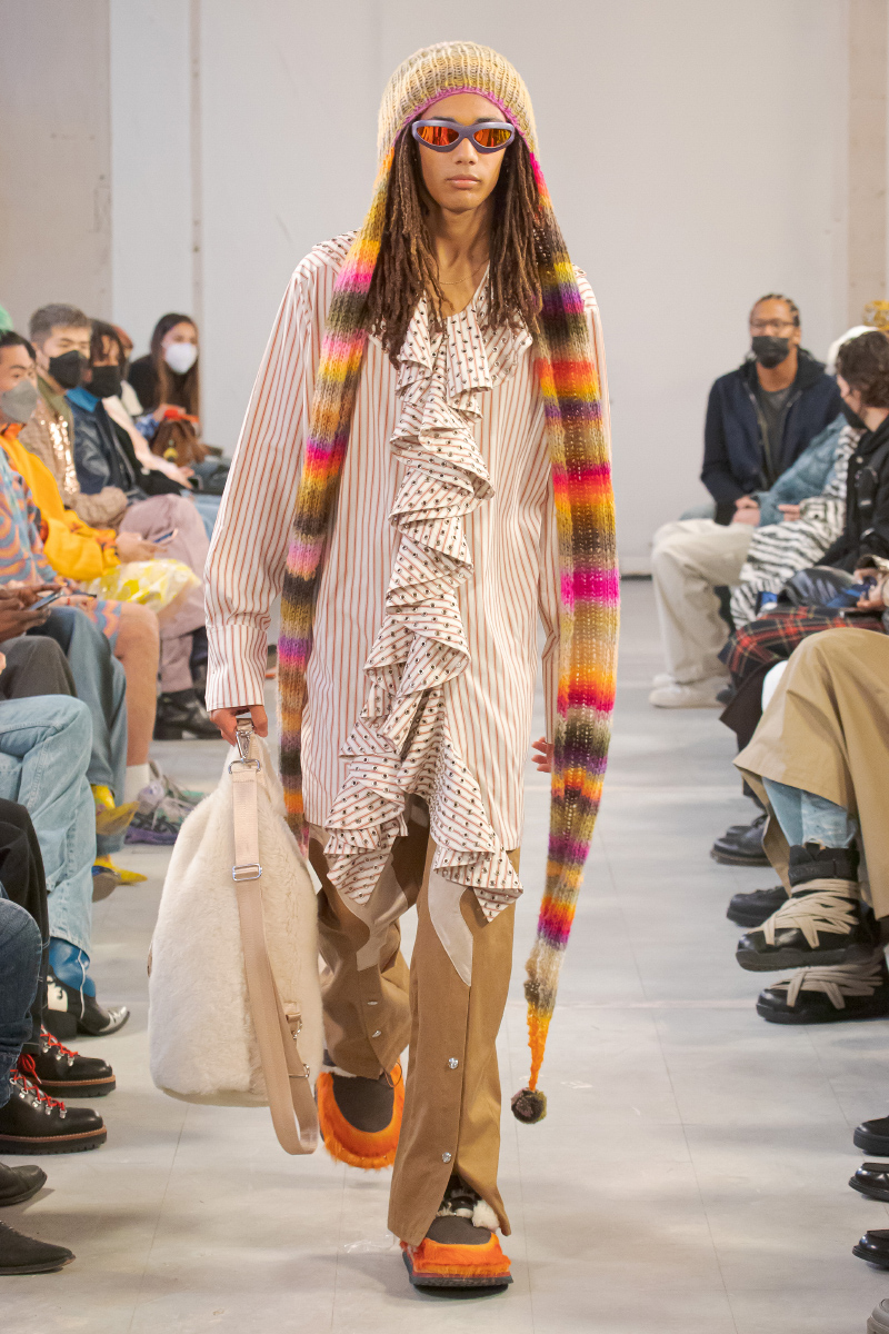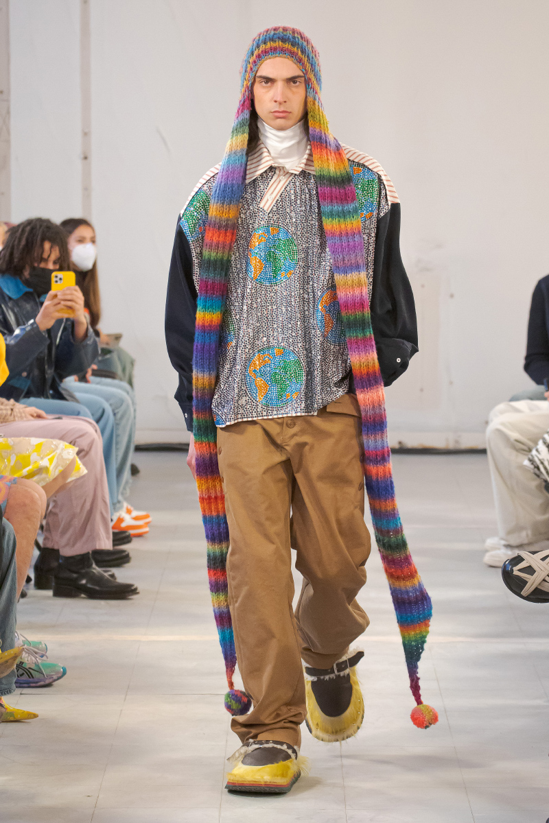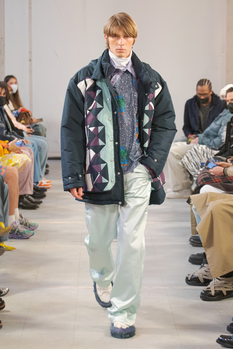 “In my imagination, I have dared to cross the Pacific Ocean on a vinta boat. The colorful, festive sails carry me on a bold adventure, from the archipelagos of the Philippines to the United States. My Fall-Winter 22 collection began with the dream to connect my cultures; to celebrate and share them; to translate their character and their craft. My hope is that these vibrant creations find their way into the wider world, the wondrous blue marble that is our home.” – Anthony Alvarez