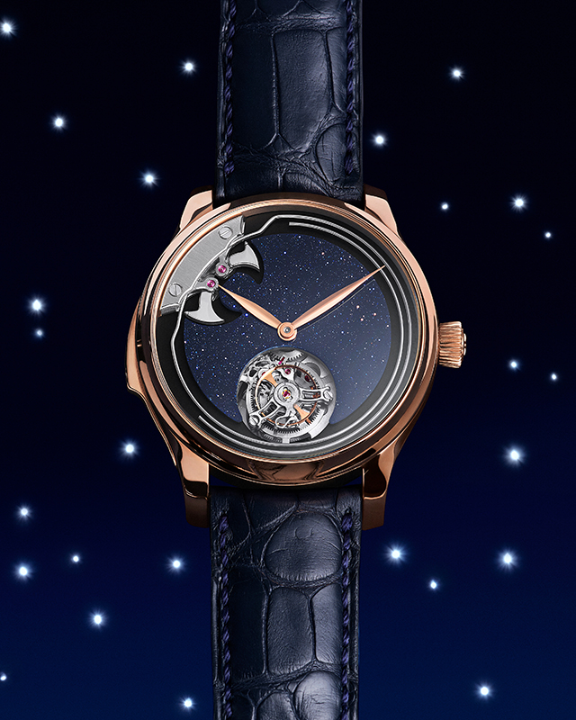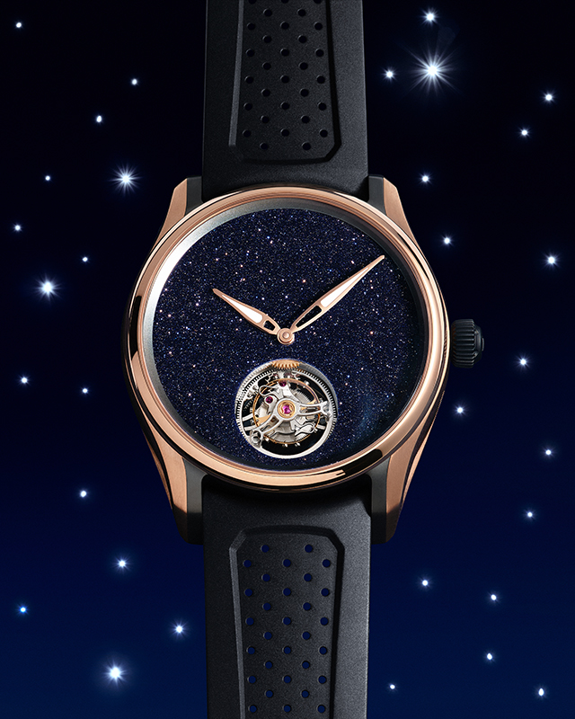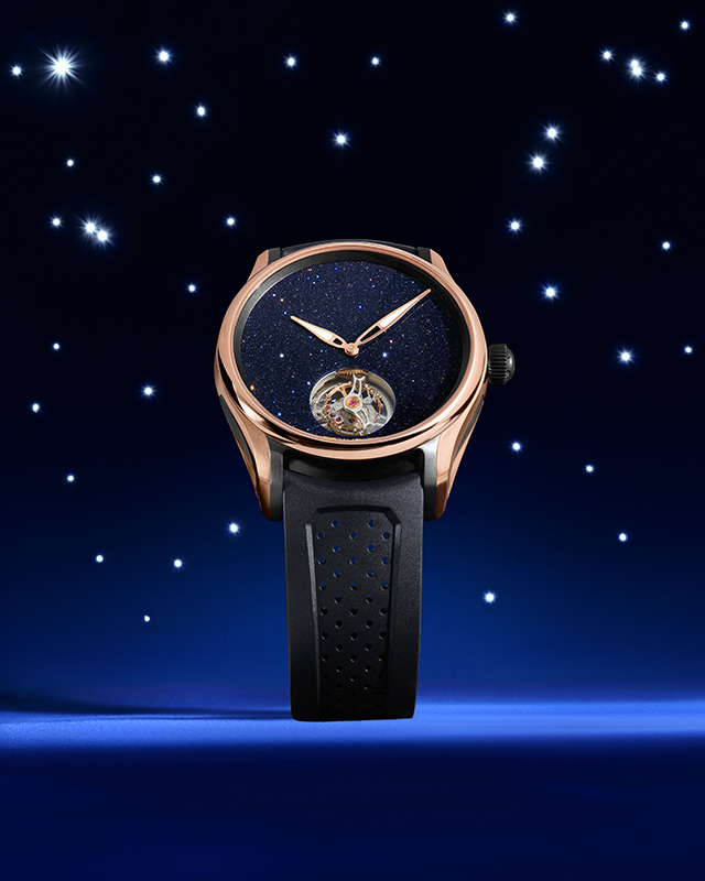 Präzisionsarbeit und höchste Schweizer Handwerkskunst – dazu haben sich Bucherer und die Schaffhauser Manufaktur H. Moser & Cie. seit Jahrzehnten verpflichtet. Nebst dem ständigen Bestreben, Grenzen zu überschreiten und Innovation mit Tradition zu verbinden, eint die Unternehmen auch ein tiefer gegenseitiger Respekt. Immer wieder entstehen so wahre Meisterwerke der feinen Uhrmacherkunst. Mit einem wunderschönen Pioneer Tourbillon sowie zwei einzigartigen Endeavour Concept Minute Repeater Tourbillons, präsentieren die beiden Traditionsunternehmen nun ganz besondere Kreationen der Bucherer Exclusives Reihe. Jedes Modell besticht durch seinen eigenen Charakter, alle eint aber ein Zifferblatt aus nachtblauem Aventurin. Es verleiht den Zeitmessern noch mehr Eleganz und ein besonderes Funkeln. Das Zifferblatt wurde vom Sternenhimmel inspiriert der als poetischer Bezugspunkt diente und den Rahmen dieser Trilogie bildet.