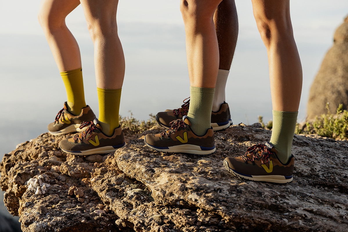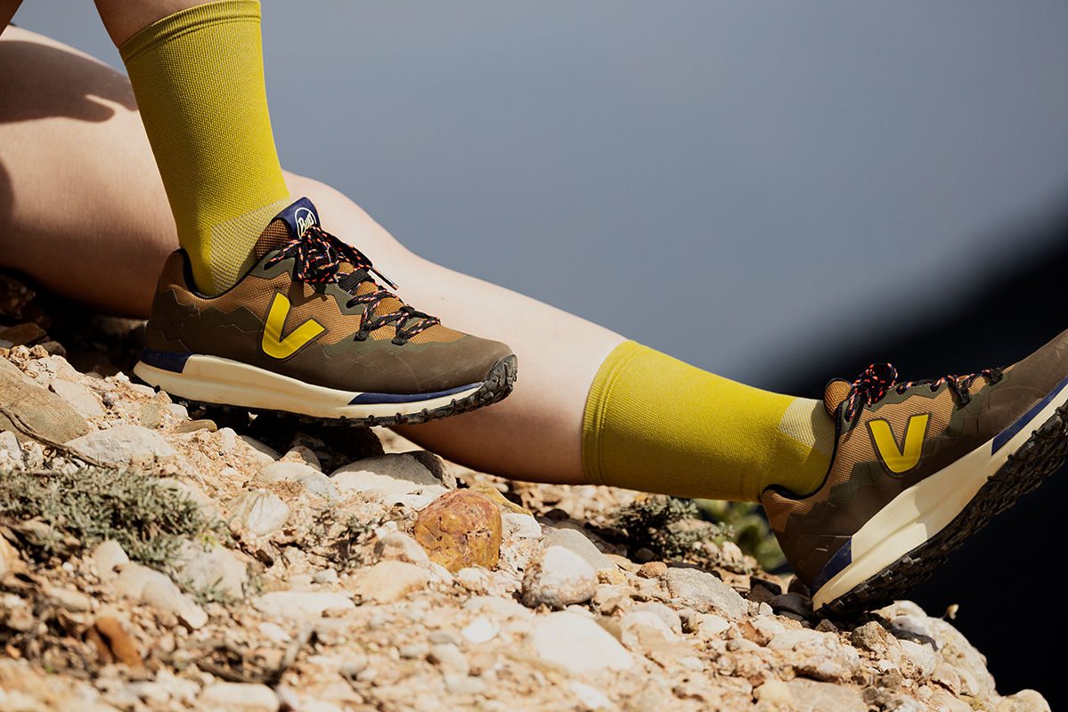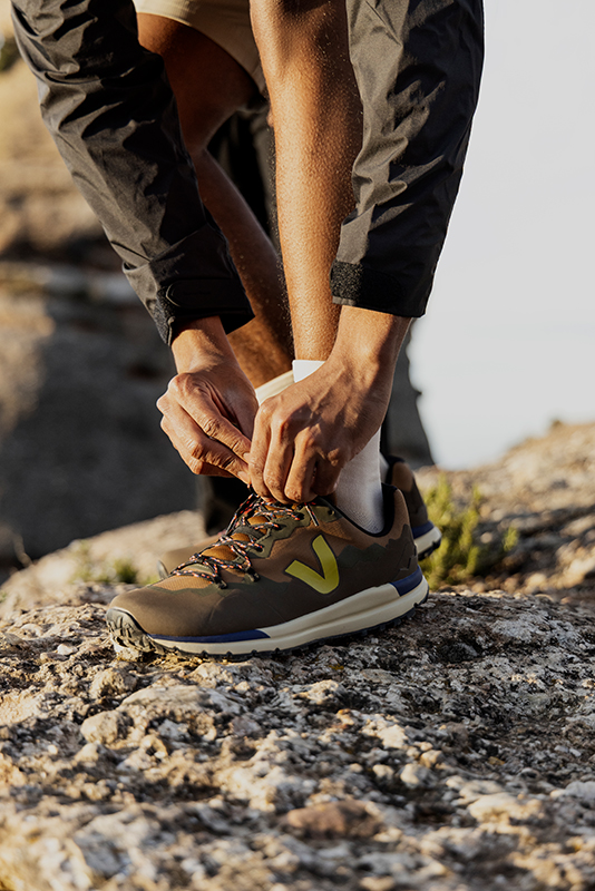 With a reinterpretation of the VEJA classic Fitz Roy, BUFF® x VEJA highlights the essence of Brazilian nature. The functional hiking shoe, made in Brazil, is combined with bold color accents from the BUFF® SS25 collection. The result: a stylish outdoor companion that combines technical know-how with a striking look.