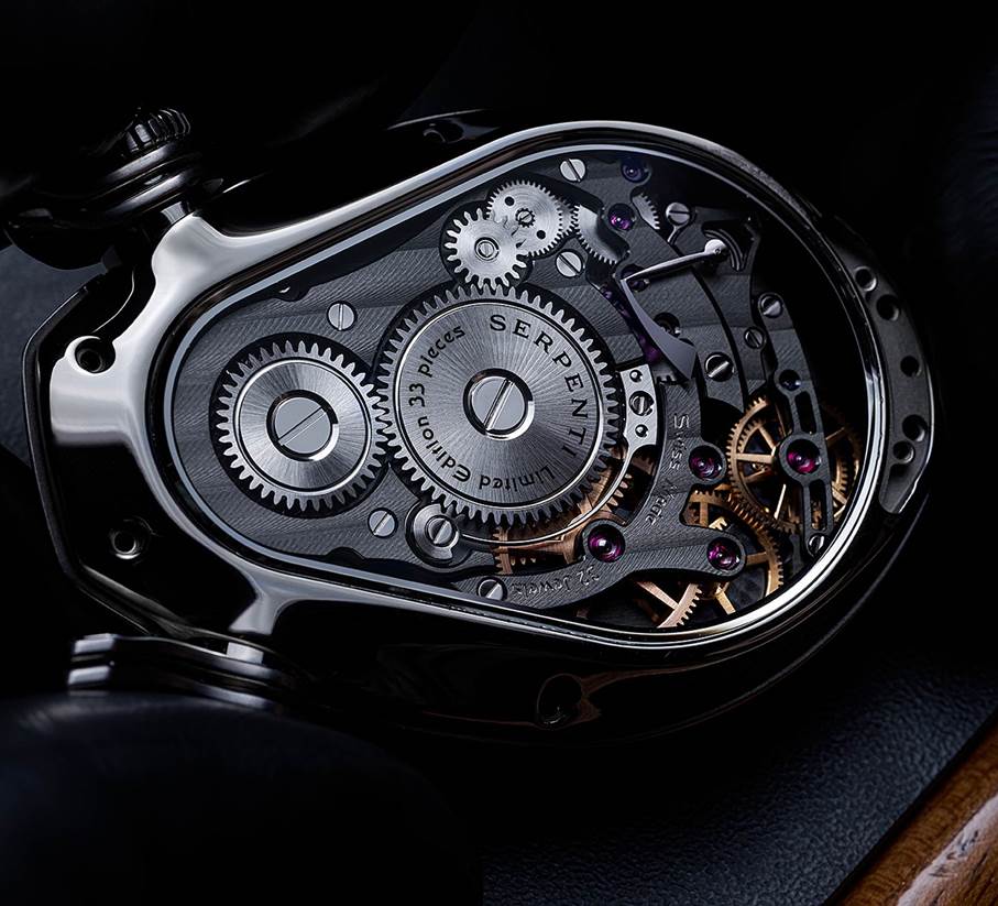 For our second collaboration – the BVLGARI x MB&F SERPENTI – Fabrizio and Max chose to reinterpret one of Bvlgari’s most famous historical creations, bringing it into the very mechanical universe of MB&F haute-horlogerie. Reimagining Serpenti – an emblem of eternal rebirth and bold metamorphosis – into a Horological Machine required a complete redevelopment of this historical piece, not only in terms of mechanical engineering and movement conception, but also in terms of case design and manufacturing. Calibre and design seamlessly enhance one another.
