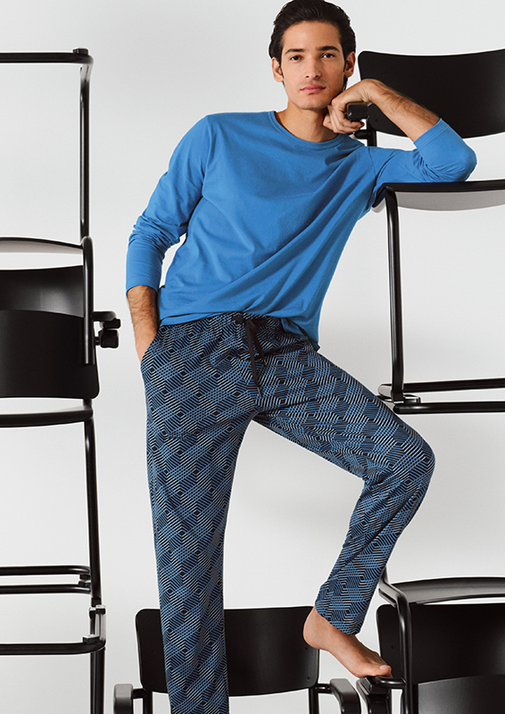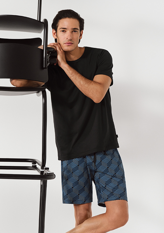 The Remix Basic Sleep mix-and-match range brings fresh colors and versatile combinations to the Fall/Winter 2025 collection. T-shirts and long-sleeved shirts in Rio Red or Coastal Blue pair with Bermuda shorts and pants with stripes or minimal prints. Black T-shirts and matching pants from the Remix Sleep Leisure range complete the selection with understated, stylish options. All styles are made from soft cotton or organic cotton and offer natural comfort – ideal for relaxing, day and night.