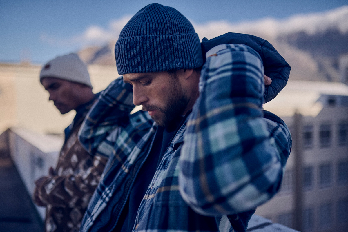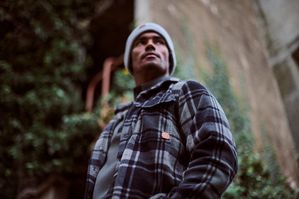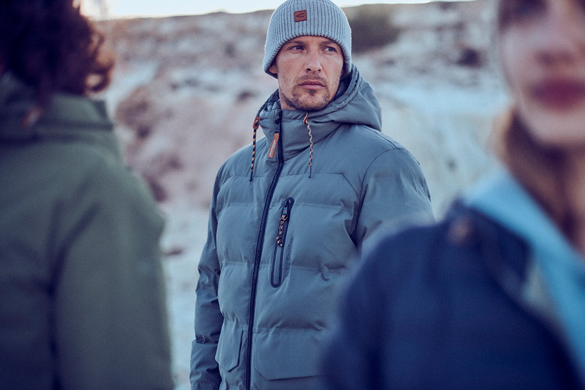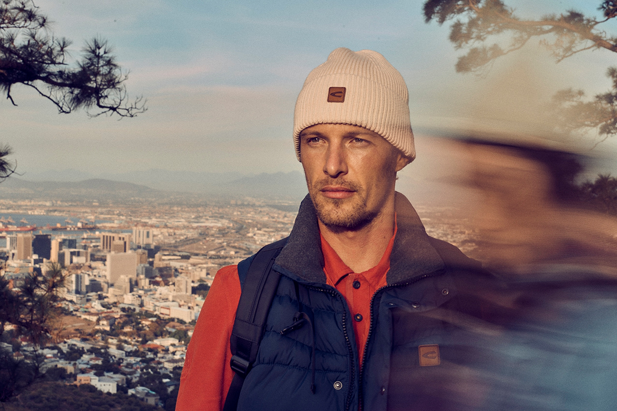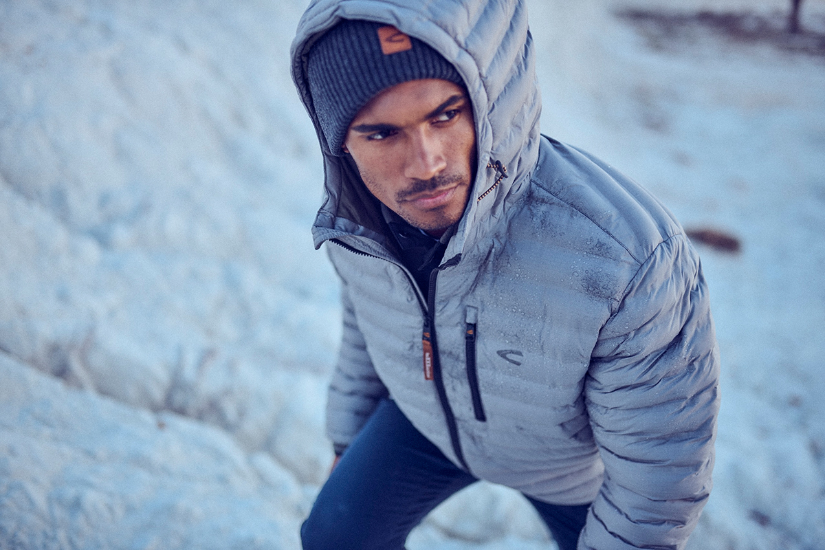 Camel active has a matching fleece cap and black fleece gloves in its range. Wide corduroy provides further surface tension, for example as a set consisting of an overshirt and cargo trousers in the color hazelnut brown. Additionally, workwear-inspired checks remain a big theme. By the way, also for women, for example as a single-breasted coat in pink, gray and cream-colored checks.