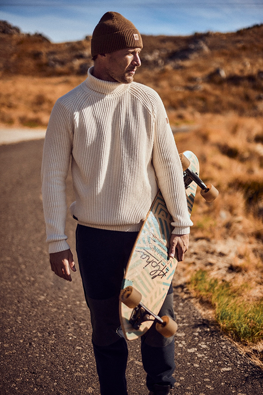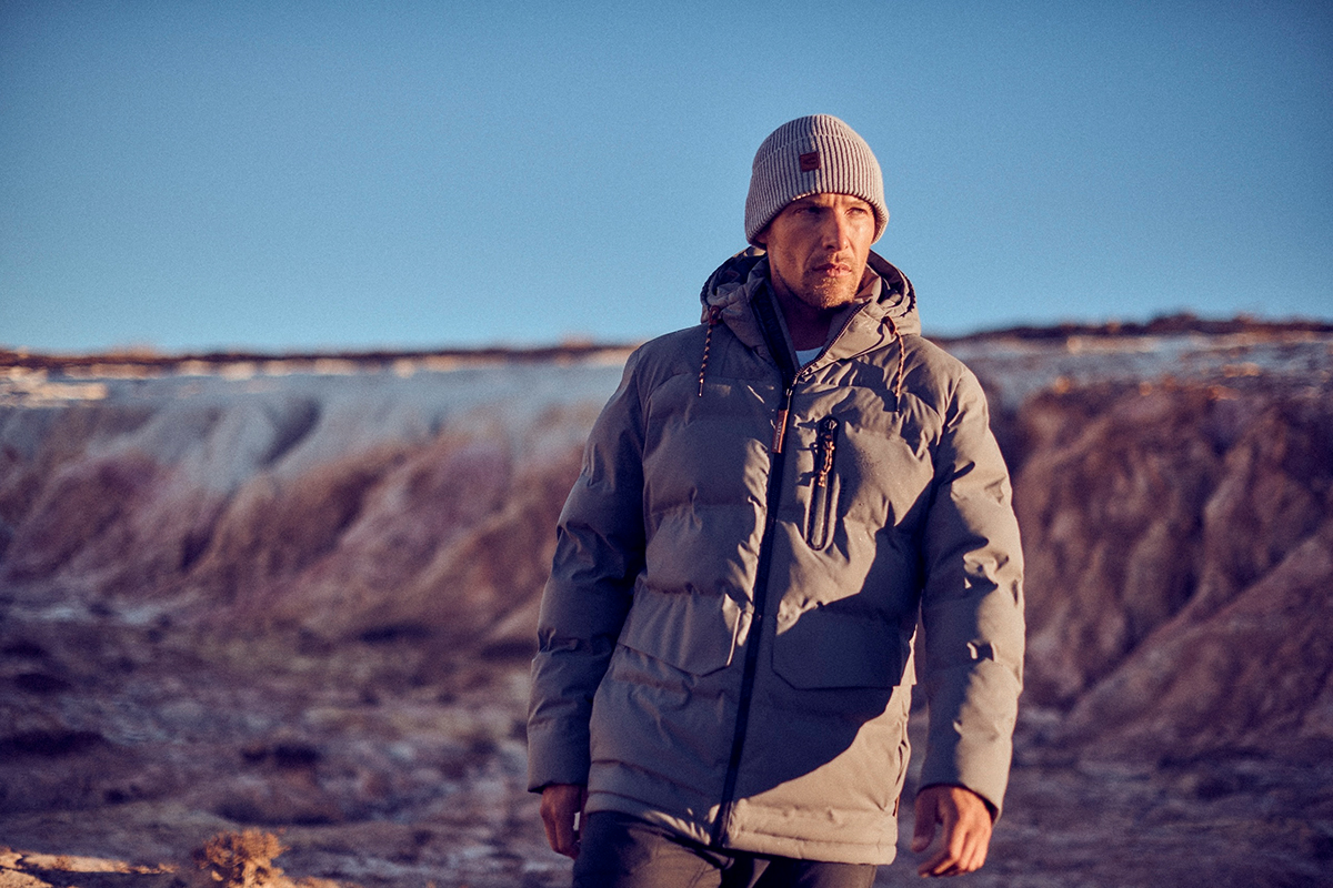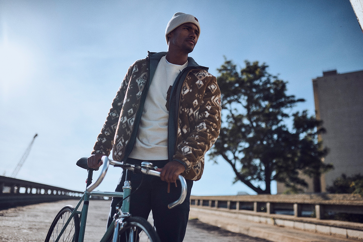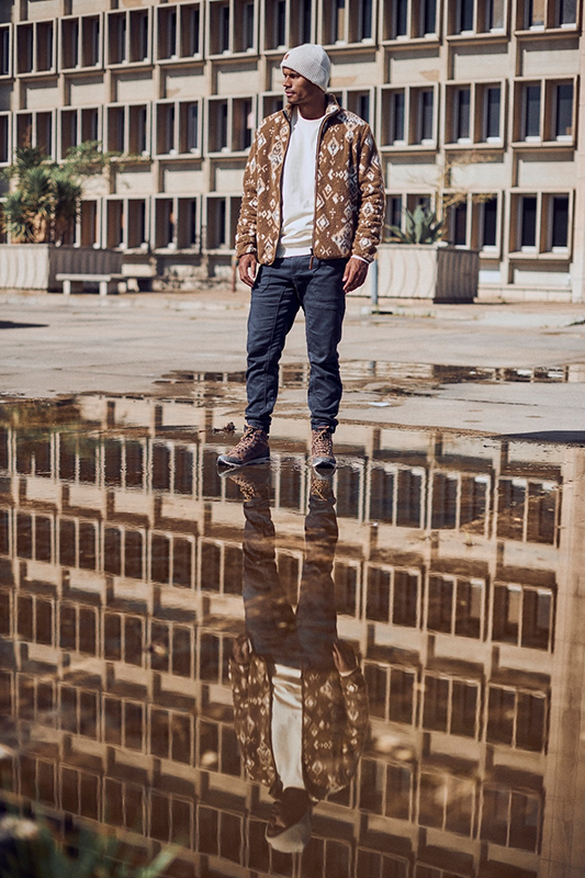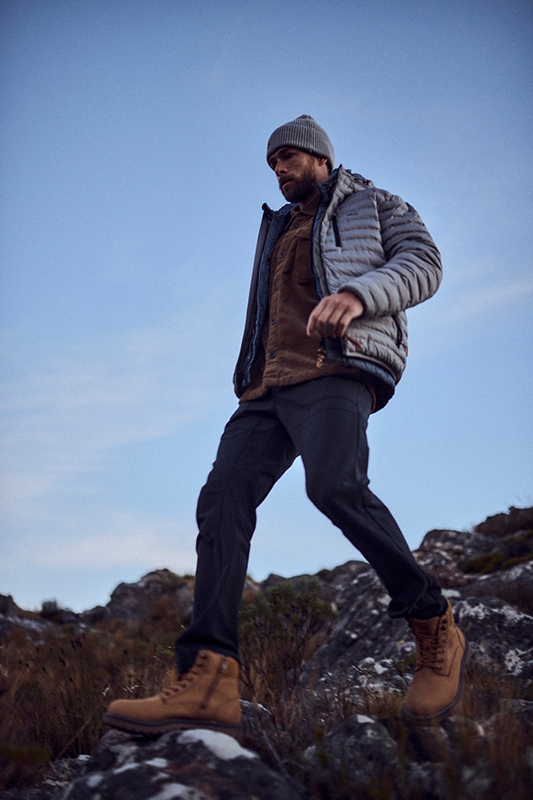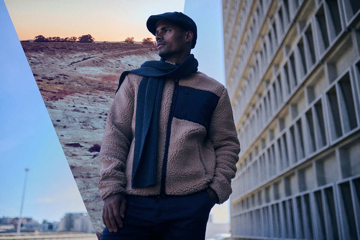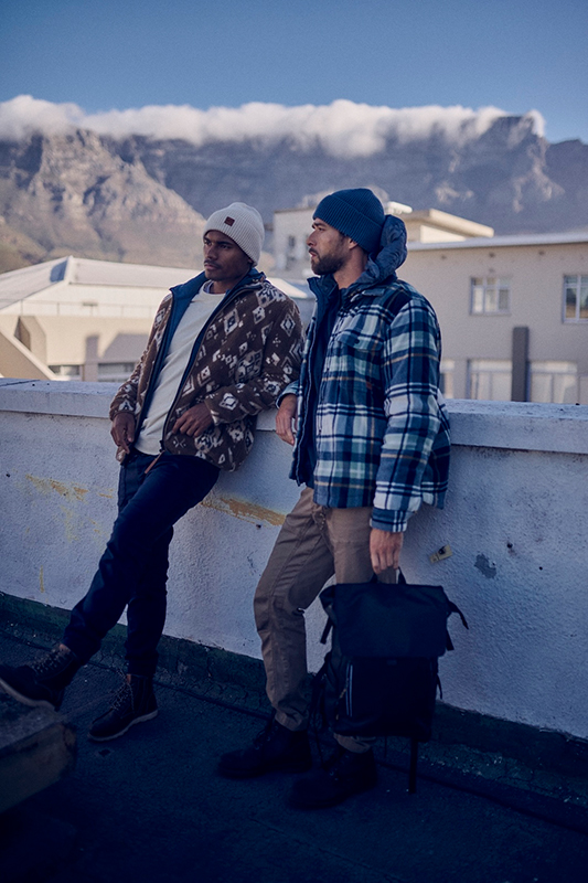 Camel active has a matching fleece cap and black fleece gloves in its range. Wide corduroy provides further surface tension, for example as a set consisting of an overshirt and cargo trousers in the color hazelnut brown. Additionally, workwear-inspired checks remain a big theme. By the way, also for women, for example as a single-breasted coat in pink, gray and cream-colored checks.