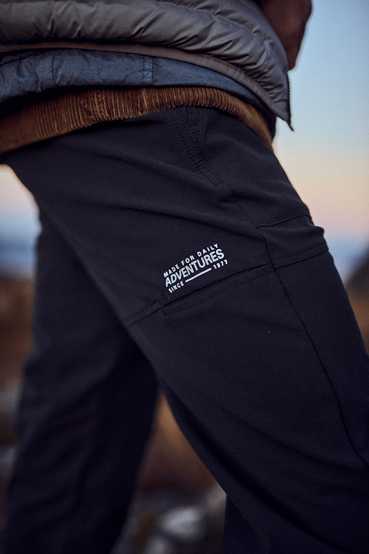 We now see soft materials such as teddy and fleece not only in outerwear, but also as functional trousers. The jogging pants made of black fleece with a contrasting knee area, zip pockets and hidden drawstring on the waistband look casual and at the same time are the perfect functional piece for the transitional period.