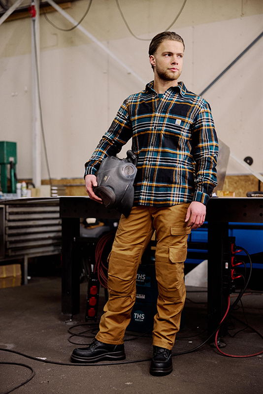 The centerpiece is the Montana Rugged Flex™ Lightweight Long-Sleeve Snap-Front Plaid Shirt, a shirt that combines lightness and freedom of movement with Carhartt’s signature durability. The woven stretch twill ensures exceptional comfort, while mother-of-pearl snap closures, adjustable cuffs, and two chest pockets—including a pencil opening—offer practical details. The washed finish gives the shirt a soft feel from the start while maintaining its shape. It’s ideal for the diverse demands of the job site, workshop, and office.