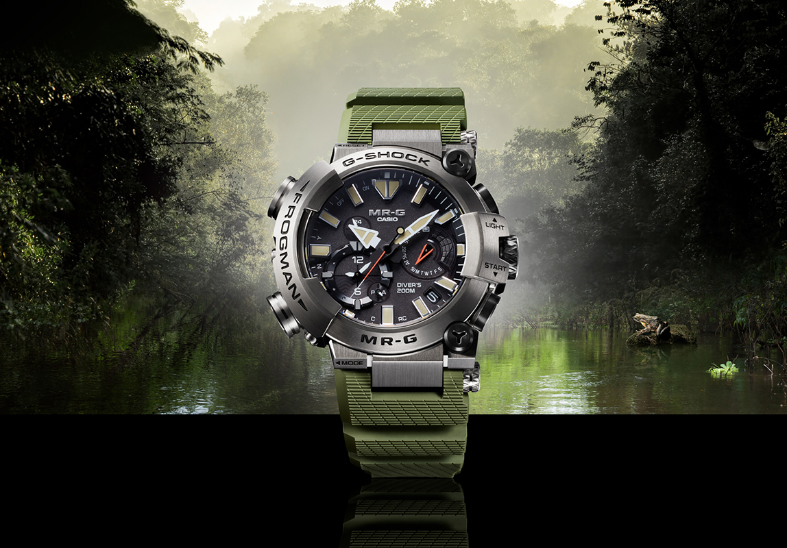 G-SHOCK today announced the launch of a new model in the MR-G series – the premium line within the shock-resistant G-SHOCK brand family. The new MRG-BF1000RG, another model in the FROGMAN dive watch line, is inspired by the world’s largest frog: the Goliath frog.
