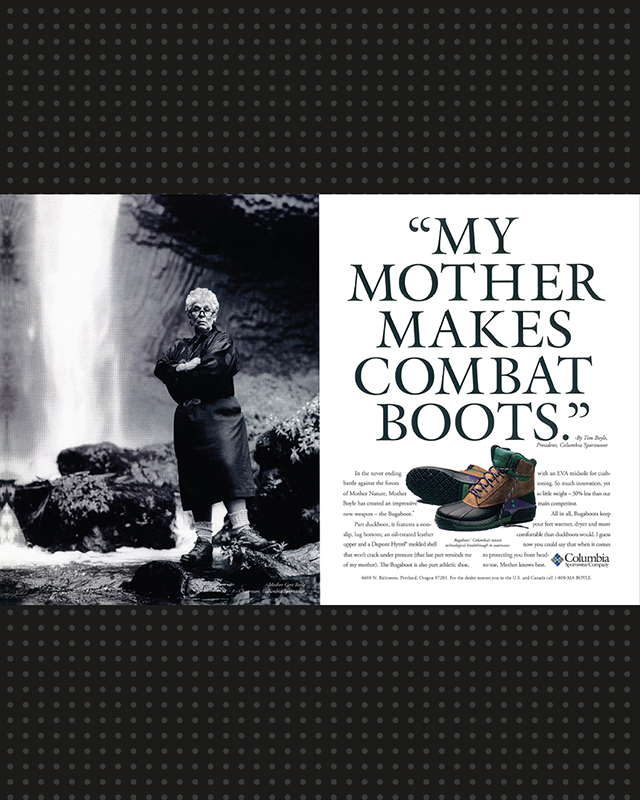 “This project means a great deal to us,” says Hagen Moore, son of Peter Moore and co-founder of the agency Boom Pow Bang Creative. “Our father poured his heart and soul into every project he created, and the Bugaboot was no exception. To see Columbia reinterpret it with such respect and attention to detail is something he would have been incredibly proud of.”