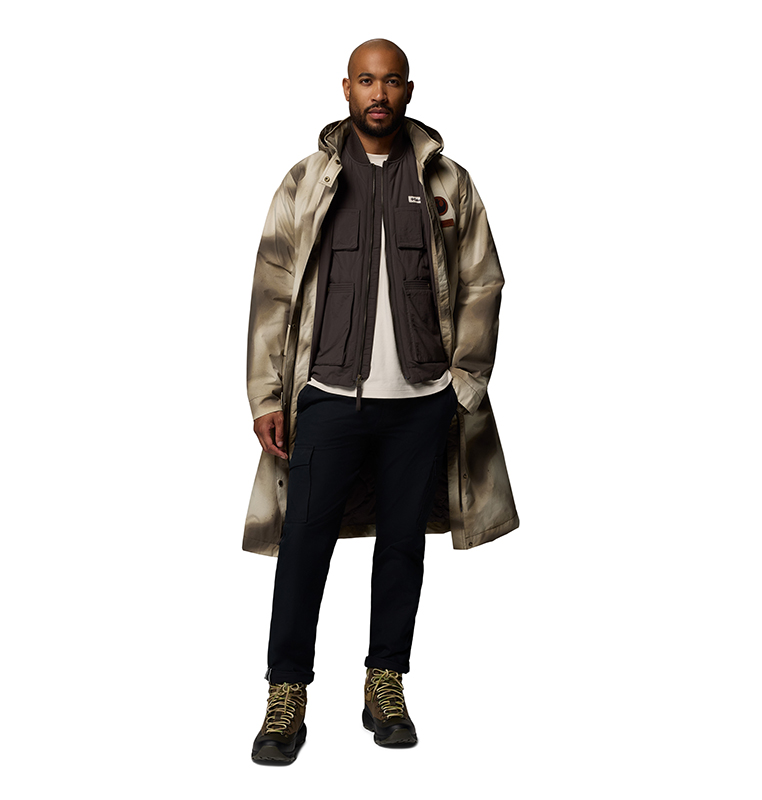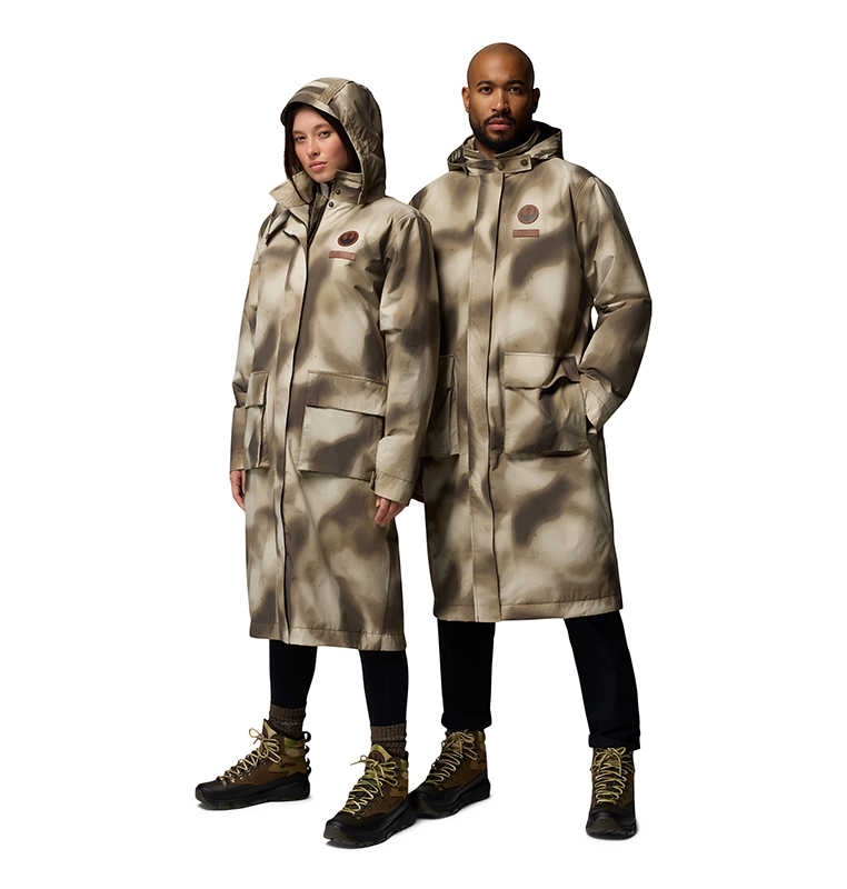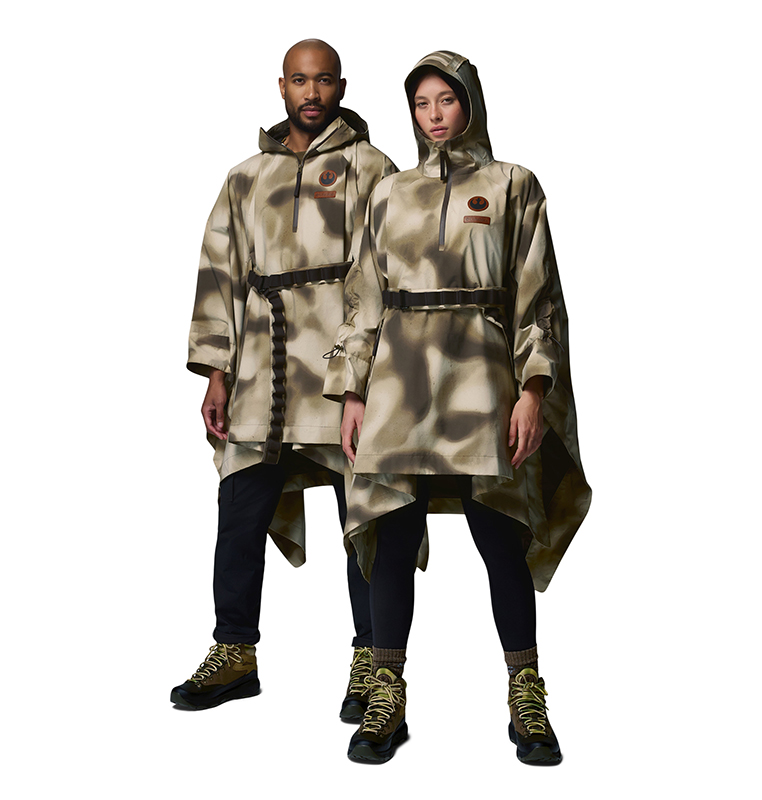 Drawing on the lush vegetation of the forest moon Endor and Columbia’s Pacific Northwest roots, the collection translates iconic movie looks into modern outdoor styles – including Han Solo’s trench coat, Luke and Leia’s camouflage ponchos, and Rebel uniforms. Each piece incorporates story-related elements, telling its own tale: from camouflage prints and Rebel symbols to hidden Easter eggs like Endor’s coordinates, secret Aurebesh messages (the writing system of the Star Wars galaxy), and patches referencing the Battle of Endor.