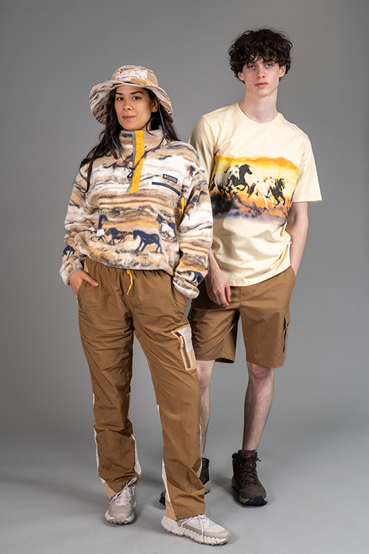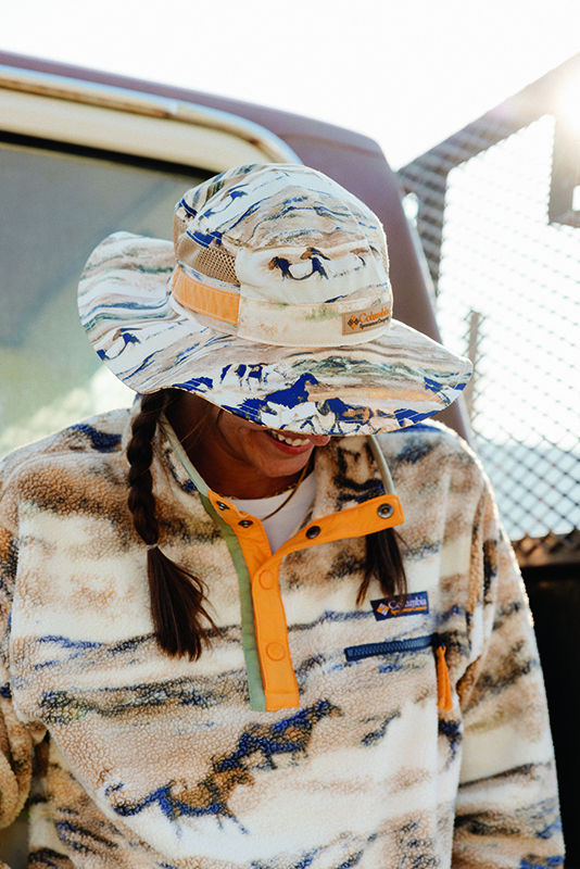 The Icons collection consists of classics that Columbia reinterprets with contemporary colors, prints, and fabrics. The entire collection is 100% gender-neutral. The soft desert tones and versatile designs make them the perfect companion, not just for western and horse fans.