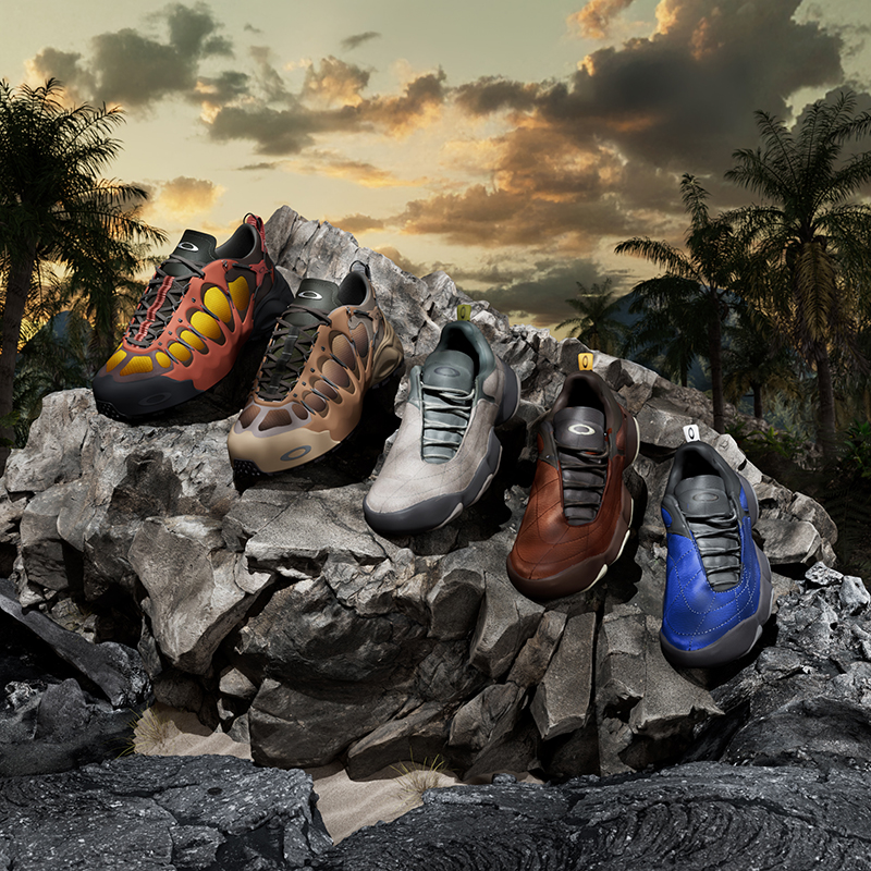 Both frames extend the same ethos found in the footwear, embodying the Oakley Factory Team mission: reimagining performance through experimentation, blending archival DNA with technical design.