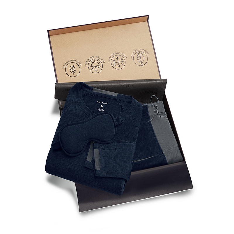 Die STAY WARM-Kollektion von Dagsmejan vereint das Beste aus zwei Welten: ultrafeine Merionwolle und Lyocell aus Eukalyptus. Diese einzigartige Kombination schafft den hochmodernen NATTWARMTM-Stoff, der nicht nur für außergewöhnlichen Komfort, sondern auch für ultraleichte, atmungsaktive Wärme sorgt, ohne dabei den schlafenden Körper zu überhitzen. NATTWARMTM ist 4x atmungsaktiver als Baumwolle und gibt die gleiche Wärme aus, wie andere Stoffe z.B. Baumwolle, die jedoch bis zu 50% schwerer sind. Die natürliche Struktur der Merinowolle bildet isolierende Lufttaschen, die mehr Luft als jede andere Faser einschliessen und so eine natürliche Abwehr gegen Kälte bilden. Wenn der Körper jedoch zu warm wird, transportieren die Merinofasern Wärme und Feuchtigkeit des Körpers nach außen, wo sie verdunstet und so für angenehme Kühlung sorgt. Das macht Merinowolle-Schlafanzüge zu einer ganzjährigen Lösung für einen erholsamen Schlaf. Studien haben gezeigt, dass Pyjamas aus Merinowolle den Schlaf um bis zu 15 Minuten verlängern können, indem sie zu einem schnelleren Einschlafen und einem tieferen Schlaf verhelfen. Zudem sind die Schlafanzüge von Natur aus antibakteriell, denn die Merinowollfaser nimmt Gerüche auf natürliche Weise auf und gibt sie erst wieder ab, wenn das Kleidungsstück gewaschen wird.