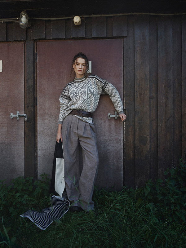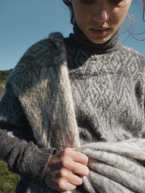 Dale of Norway is introducing garments knitted from natural, undyed wool. Sourced from sheep with a variety of fleeces ranging from light to dark tones, this wool offers a rich, naturally heathered appearance. The wool is visually sorted by color, creating a stunning palette of brown and gray shades that highlight the wool’s raw authenticity.