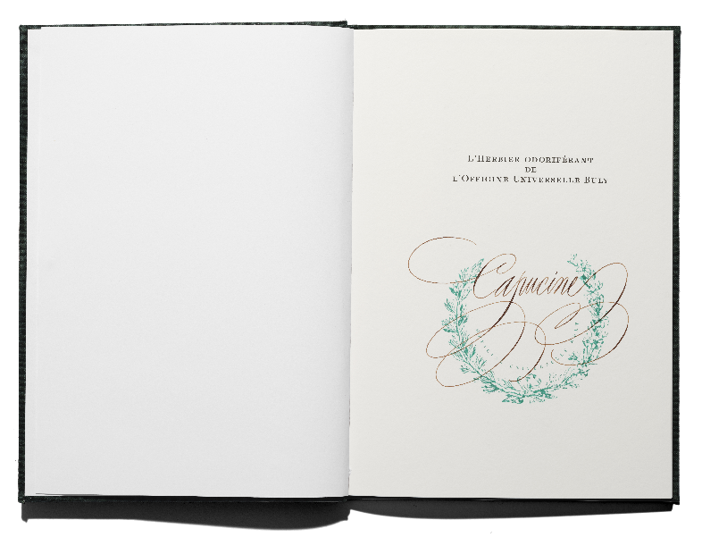 Im 10. Jubiläumsjahr der Gründung von Officine Universelle Buly vereint das Duft-Herbarium drei Sinne des Menschen – Riechen, Tasten und Sehen – mit zu Unrecht verkannten Düften aus dem Gemüsegarten. Das Herbarium von Officine ist ein olfaktives Gedächtnis der Welt in Form von Texten, Illustrationen und Düften.