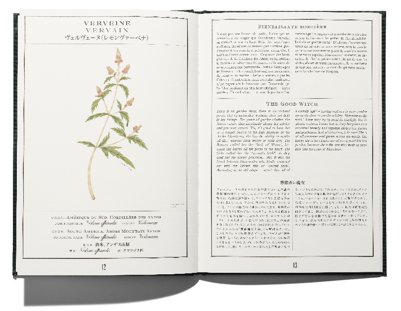 Dieses Herbarium ist mehr als eine Sammlung getrockneter und gepresster Pflanzen: Es wird von gelehrten Botanikern, wehmütigen Reisenden, akribischen Sammlern und romantischen Liebenden gespeist. Dieses stoffgebundene und mit goldenen Lettern verzierte Büchlein mit der nostalgisch anmutenden Aufmachung von Ramdane Touhami & Art Recherche Industrie birgt ein Geheimnis: Dank einer speziellen, auf dem Papier angewandten Technik werden die Duftnoten der Kollektion „Les Jardins Français“ immer dann freigesetzt, wenn man mit den Fingerspitzen über die Illustrationen fährt.