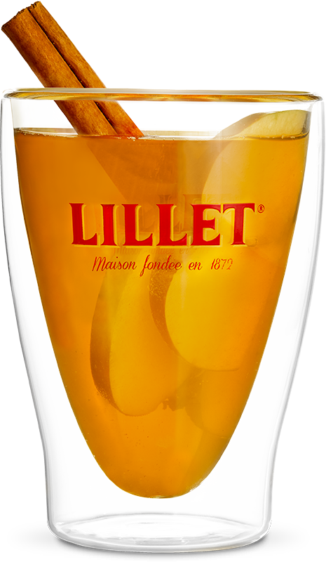 Lillet Blanc, Apfel- und Zitronesaft in einem Gefäß erhitzen, aber nicht kochen. In einem dekorativen Glas servieren und mit Zimtstange und Apfelscheibe garnieren.