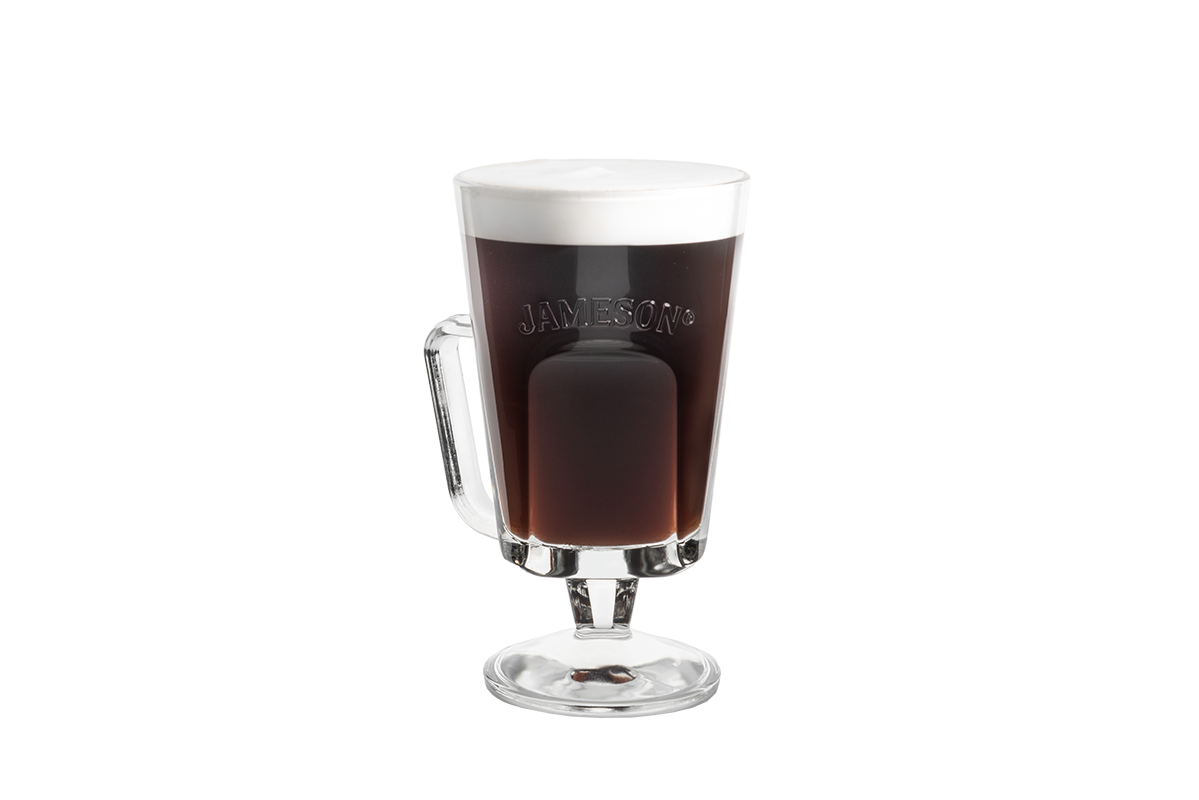 Jameson mit Zuckersirup in einem Glas verrühren. Espresso direkt aus der Kaffeemaschine in das Glas laufen lassen und mit Schlagsahne drapieren. Anschließend mit einer Vanilleschote oder Zimtstange sowie gemahlener Muskatnuss garnieren.