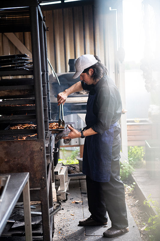 “Cooking with fire is as old as time – it’s hard work, raw and immediate, leaving no room for error, and it is incredibly hard to master,” comments founder and head chef Tobias “Tobi Beck. “Our tools, our workwear, everything needs to be tough and durable in order to create spaces where people can come together and connect.”