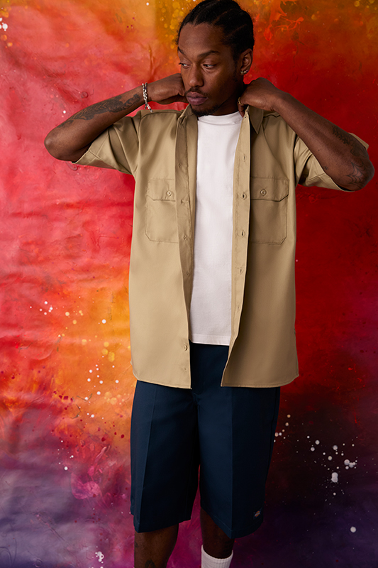 In keeping with the warm season, Dickies has launched its most iconic fits as a unisex collection. The Workshirts Short Sleeves and the 13 Inch Multi Pocket Shorts are not only incredibly casual, but also very functional – making them the perfect everyday look for the summer!