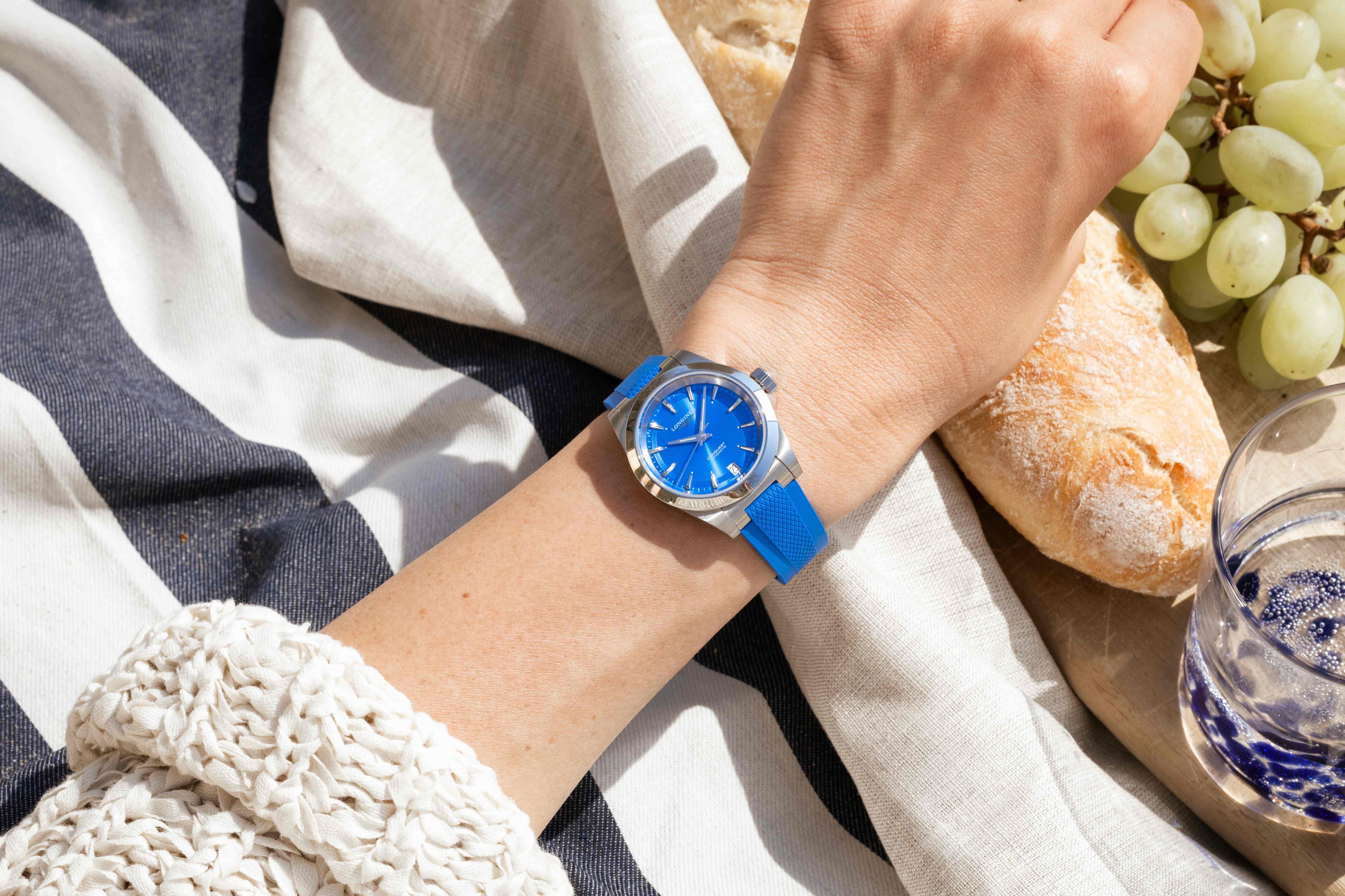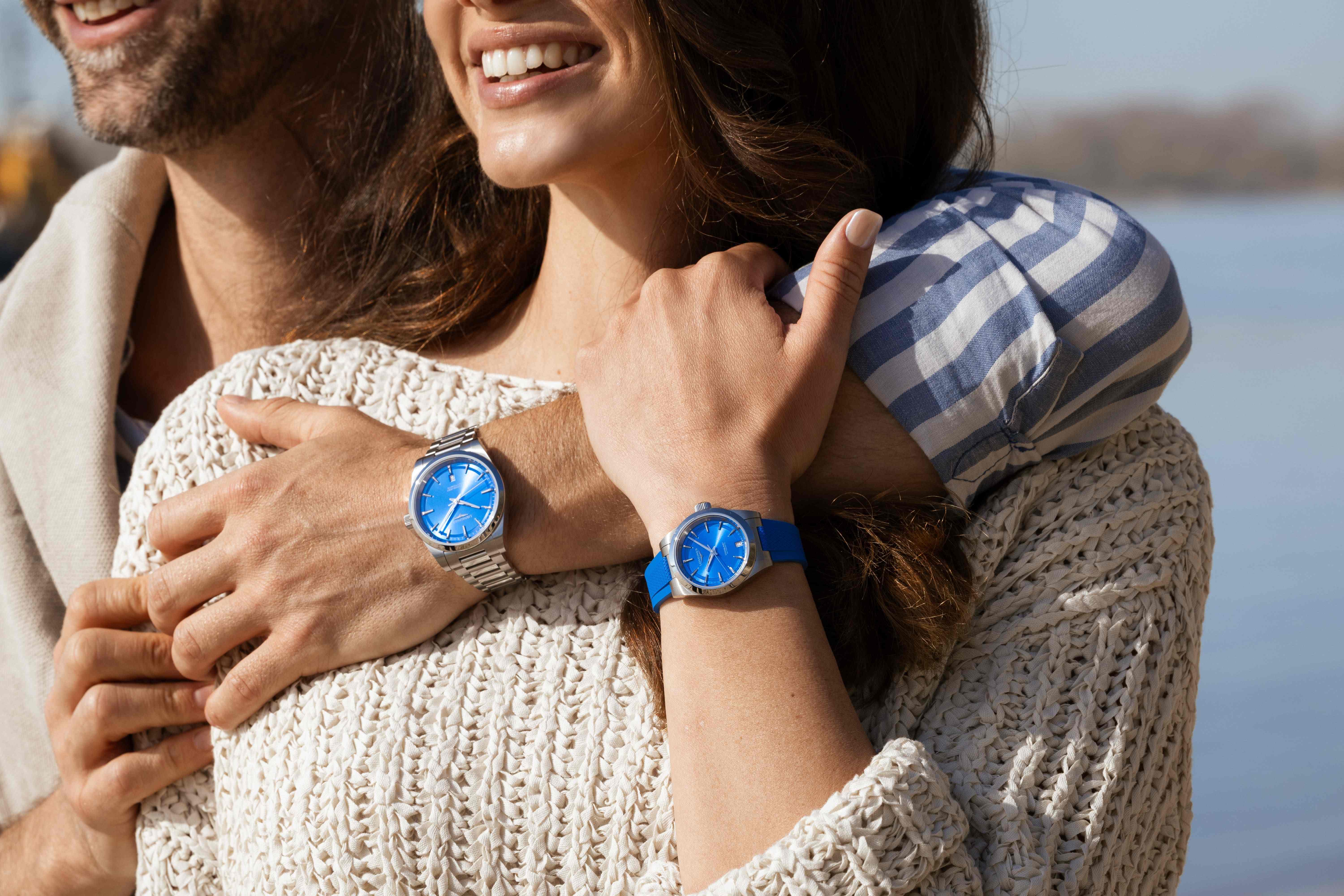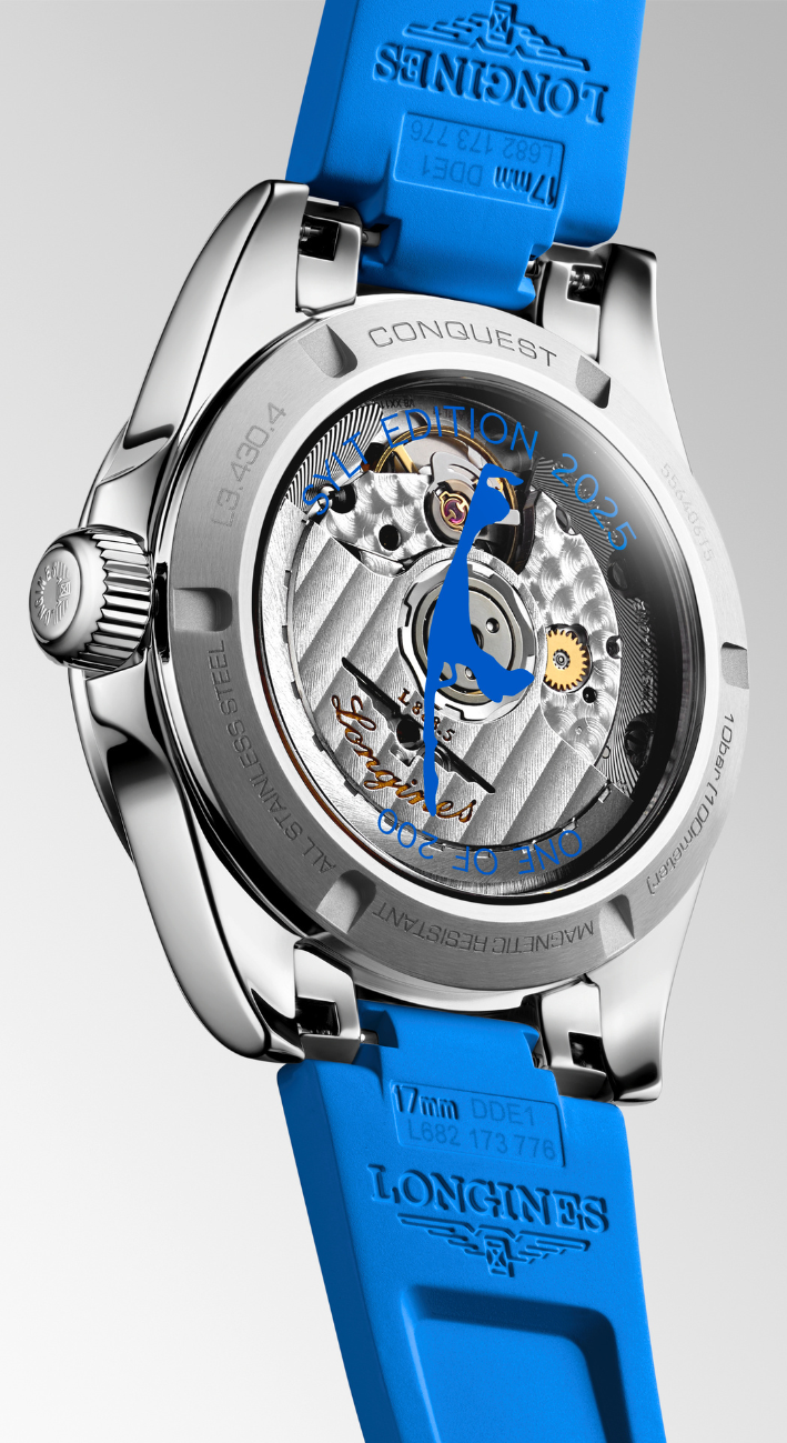 Diese leuchtend blauen Conquest Modelle sind mit 41 mm Durchmesser und Stahlband sowie mit 34 mm und Kautschukband erhältlich. Die beiden sportlich-eleganten Modelle zeichnen sich durch ihre so robuste wie elegante Verarbeitung aus. Die blauen Zifferblätter sind mit einem feinen Sonnenschliff versehen, und die Silhouette der Insel – ein echtes Erkennungszeichen unter Gleich- gesinnten – findet sich auf dem transparenten Gehäuse- boden der Automatikuhren wieder.
