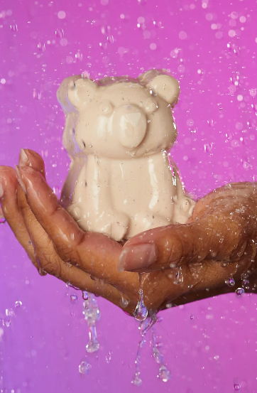 Dieser sanfte Babybär ist voll Hafermilch für eine weiche und cremige Reinigung. Der Duft von Vanille und Mandeln beruhigt und pflegt auch kleine Hände.