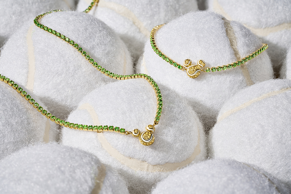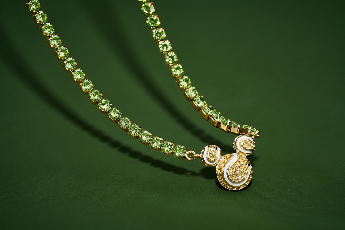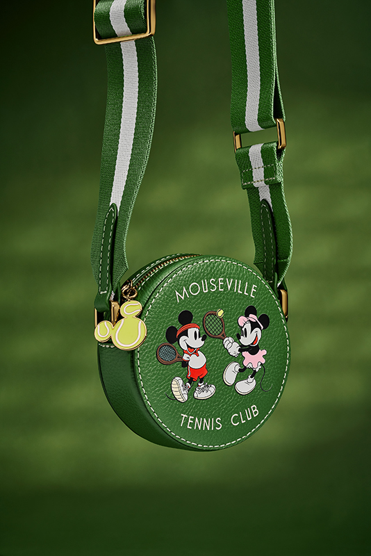 The highlight of the collection is the limited Mickey Mouse Tennis Watch, the design is based on the Fossil Heritage Watch and has been presented with a fresh twist and loving details. Mickey adorns the dial and the Mickey Mouse silhouette, inspired by the tennis court, is shown on the back of the watch. Other key styles include the leather crossbody and canvas bag with illustrations of Mickey and Minnie, as well as a tennis ball-inspired necklace and bracelet with yellow and green pavé crystals.