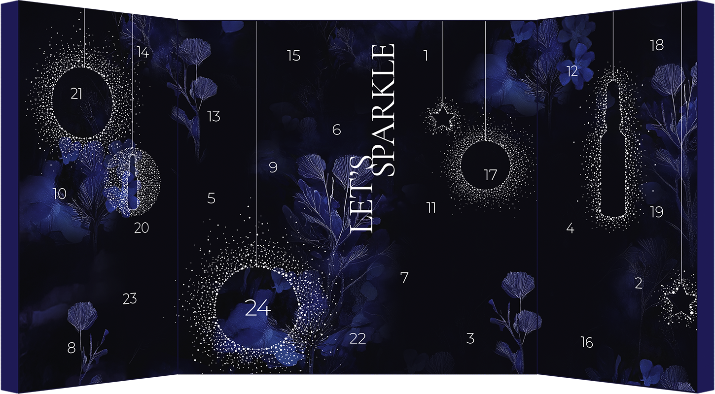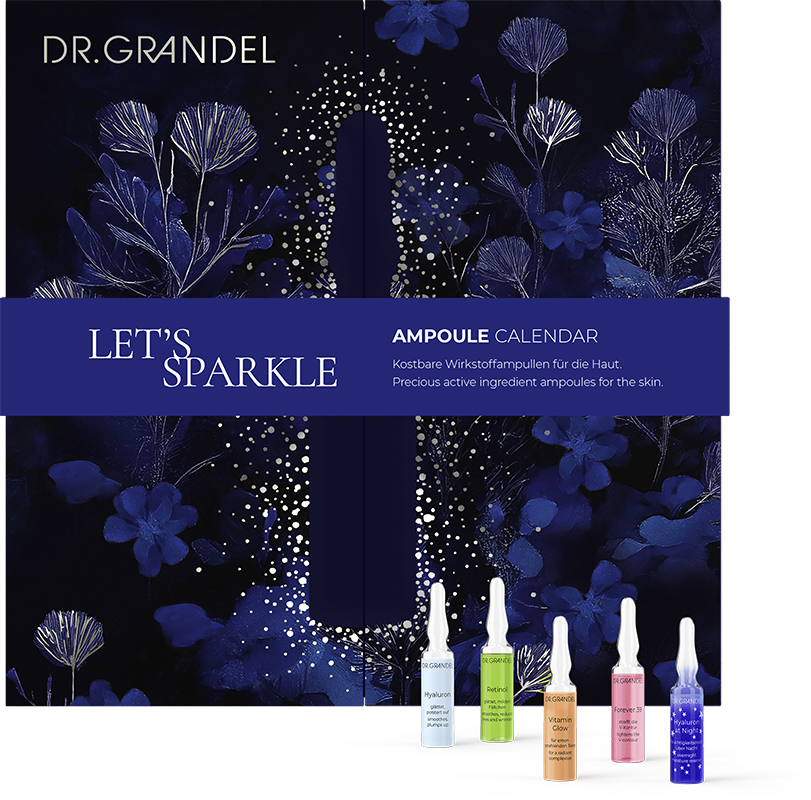 Mit dem neuen Ampullen Adventskalender im dunkelblauen Design setzt DR. GRANDEL ein Statement in der Vorweihnachtszeit: LET’S SPARKLE! Ab August präsentieren die Ampullen Pioniere aus Augsburg erneut einen mit 25 Wirkstoffkonzentraten prall gefüllten Kalender. Effektiv. Wirksam. Wow. Die Auswahl begeistert mit besonderen Texturen, wertvollen Ingredienzien und einer prächtigen Farbvielfalt; unvergessliche Verwöhnmomente garantiert.