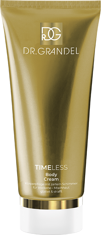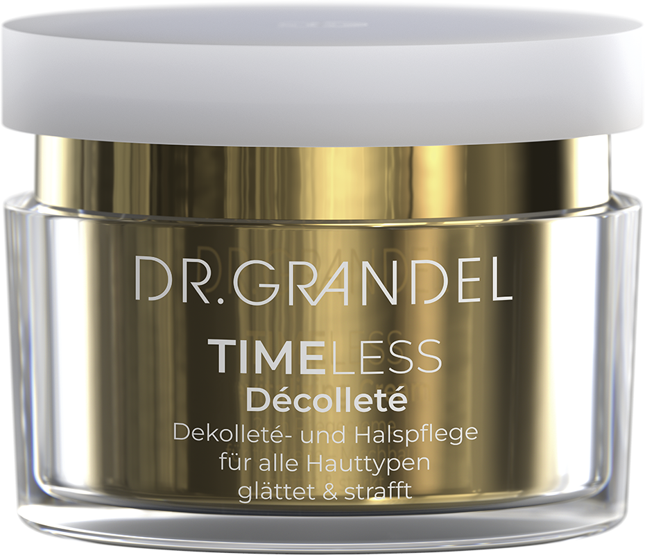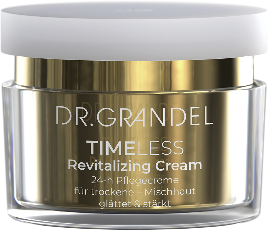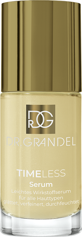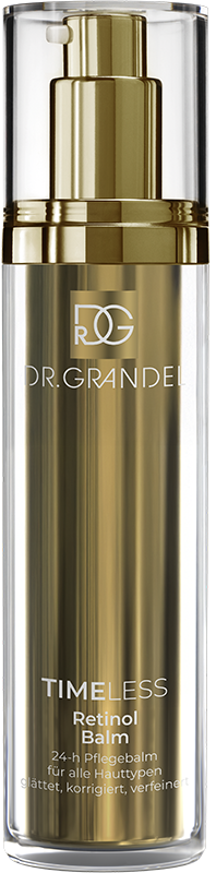 Anti-Aging Pflege für zeitlos schöne Haut. Von Geburt an befindet sich unsere Haut in einem ständigen Erneuerungsprozess, der sich jedoch mit zunehmendem Alter verlangsamt. Dies führt zu einer natürlichen Hautalterung, in deren Folge Linien und Fältchen auf der Haut erscheinen und sich Mimik- und Ausdrucksfältchen immer weiter vertiefen. Hinzu kommen zahlreiche Einflüsse von außen, insbesondere Stress- und Umweltbelastungen, die den natürlichen Alterungsprozess erheblich. Die TIMELESS-Serie von DR. GRANDEL wirkt gegen die Auswirkungen der Hautalterung, verursacht sowohl durch innere als auch äußere Einflussfaktoren. Die Produkte mit der Kraft der Buchenknospen in Kombination mit weiteren aktiven Wirkstoffen minimieren Linien und Fältchen und verbessern die Zellerneuerung. Die Haut erhält ihre Strahlkraft zurück. TIMELESS glättet und regeneriert die Haut. Zeitlos schön.