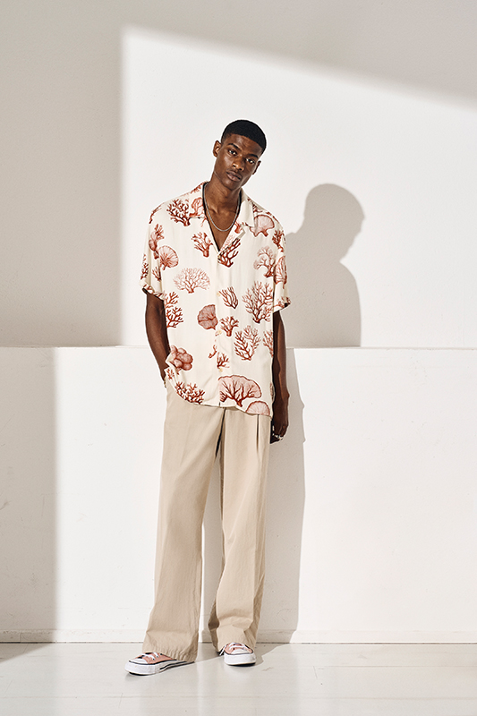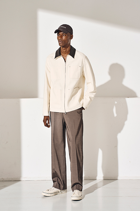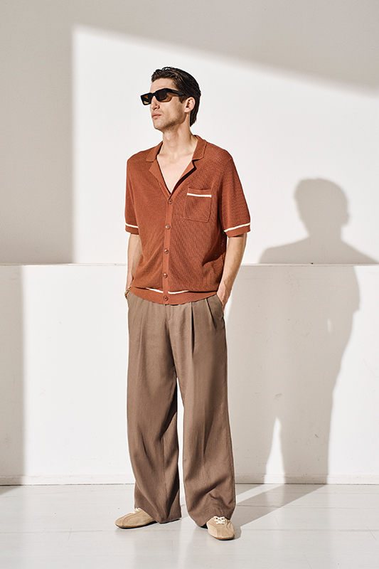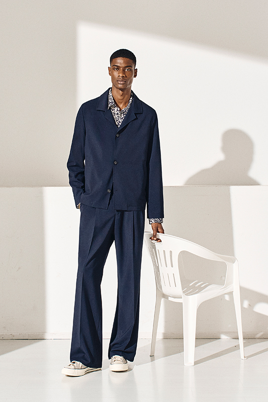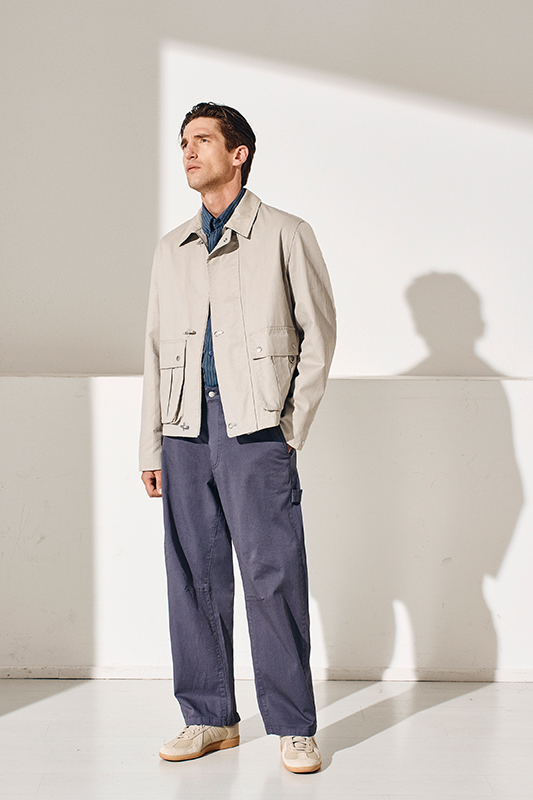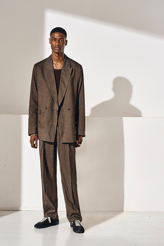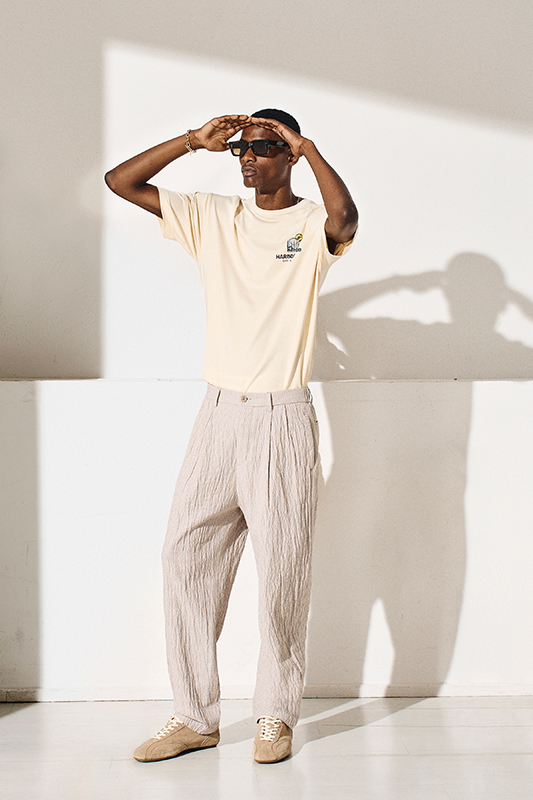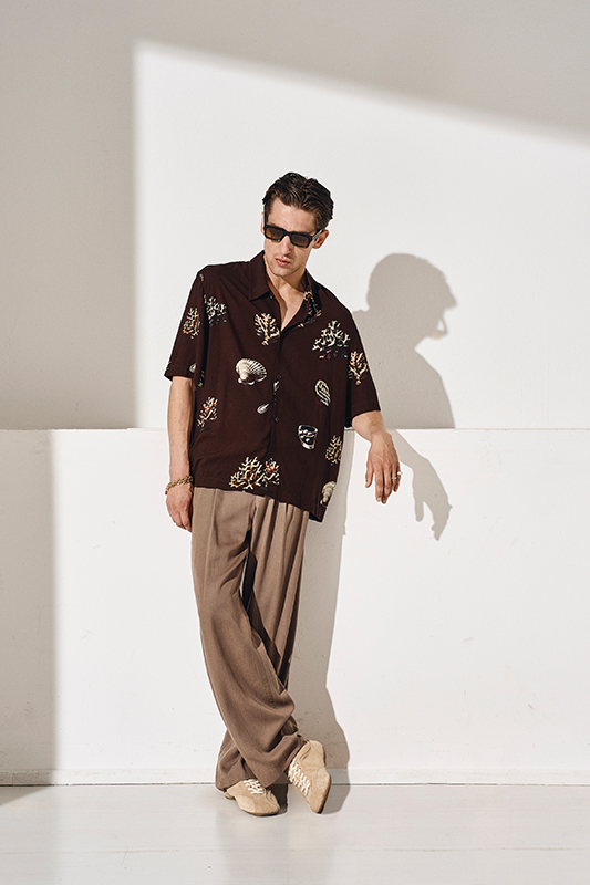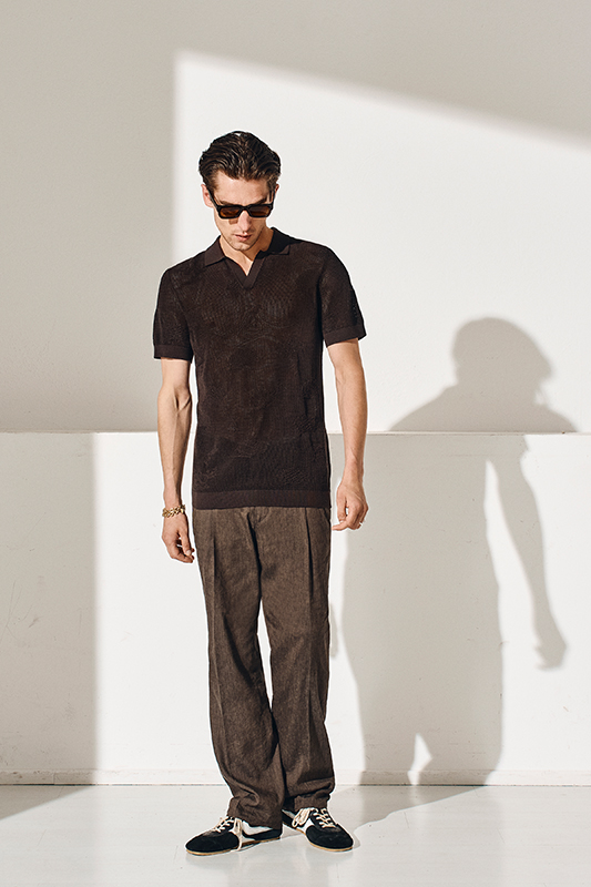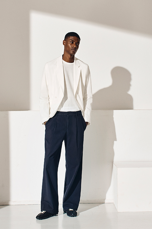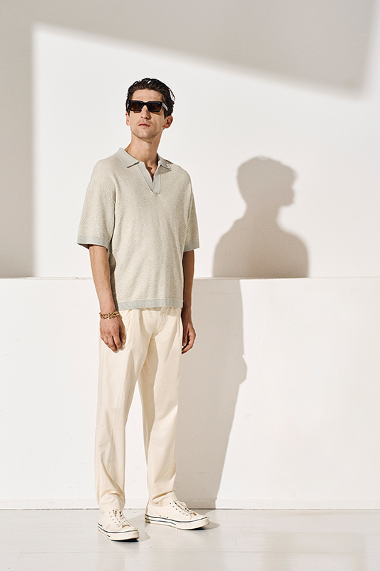 Inspired by life at the port – between hard work and effortless elegance. Lightweight natural materials meet maritime textures: patterns and jacquards reminiscent of coral, shells, and ship’s ropes. Robust workwear trousers are combined with linen tailoring – a dialogue between function and form.