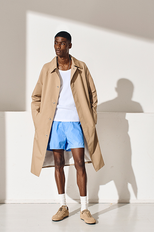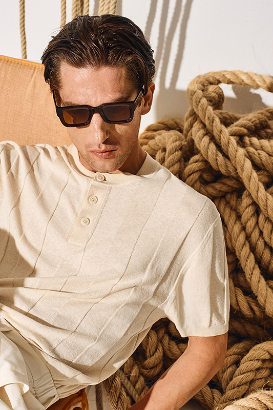 The color palette is defined by the sea: sun-faded browns, soft beige, mint green, coral, and lilac – like salt on the skin and the breeze during golden hour. A wardrobe that moves effortlessly between dockwork and oyster bars. Casual, precise, and at home – as if shaped by the sun and tides themselves.