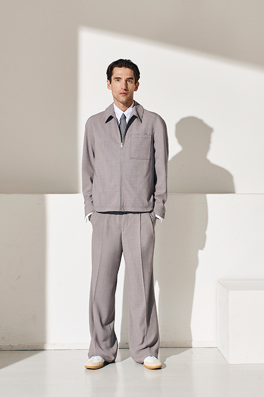 Our collection embodies this idea: timeless pieces, minimalist in design, precise in execution. Worn with ease – not to stand out, but to arrive. The campaign captures this spirit through visual contrasts: Tailoring can be found in places where fashion isn’t expected – alongside sun-bleached stones, tangled fishing nets, and locals in swim trunks. Not to disrupt the scene, but to be a part of it. The man in a tie and bomber jacket belongs just as much as anyone else. Not to be seen – but simply to be there.