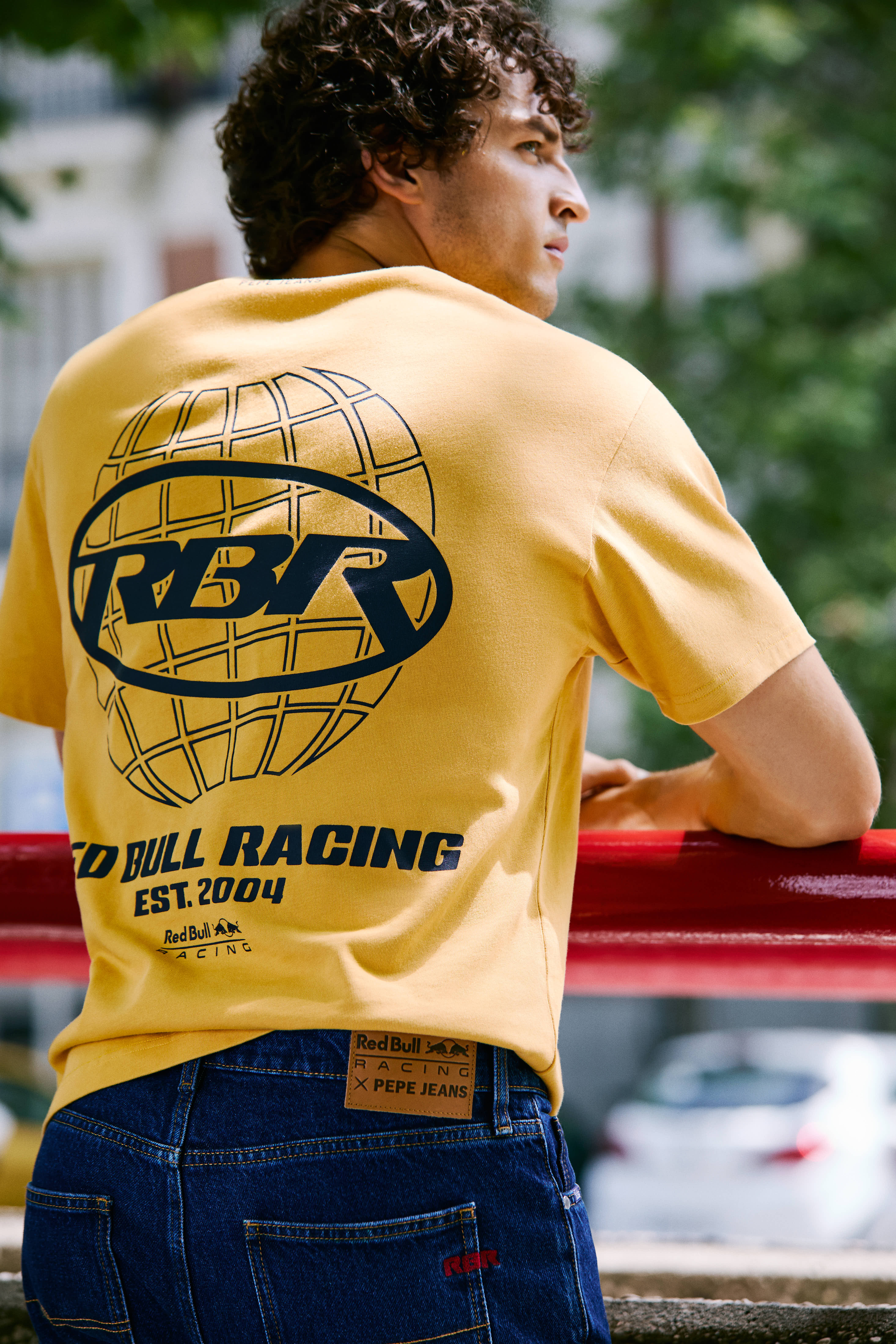 The collaboration brings two worlds together: the fashion expertise of Pepe Jeans London and the motorsport experience of Red Bull Racing. The result is a distinctive look that combines fashion and racing character.