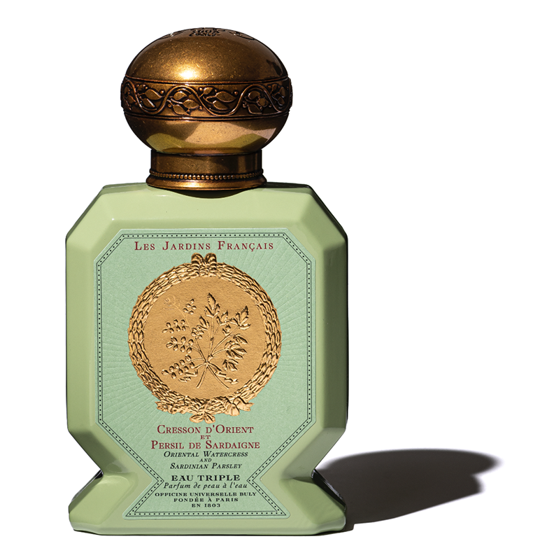 Oriental watercress and parsley from Sardinia, a green, woody fragrance like a garden at dawn, where the aroma of fresh parsley and the slightly peppery notes of watercress unfold in the morning dew.
