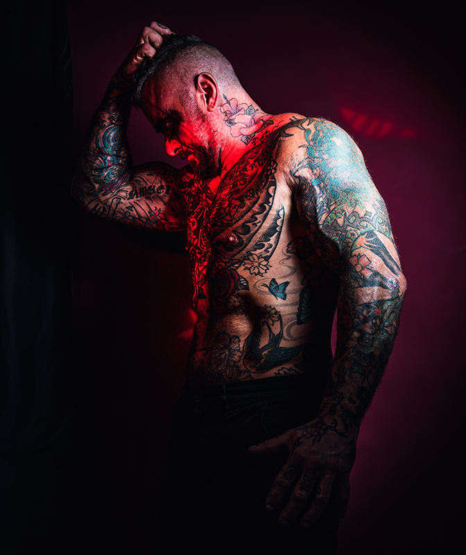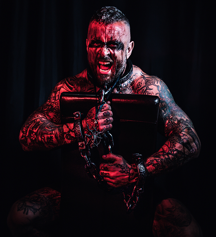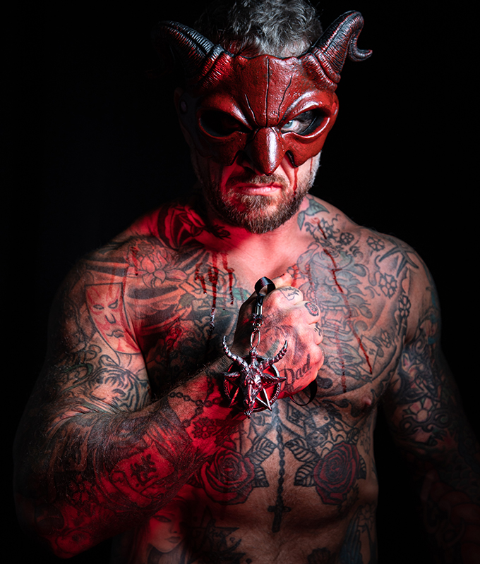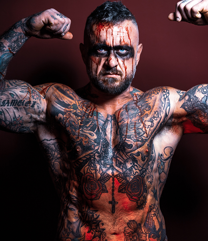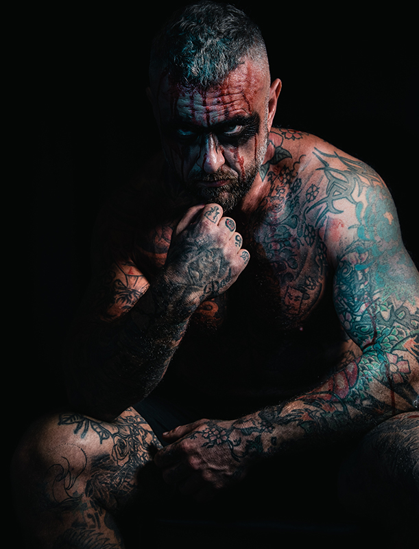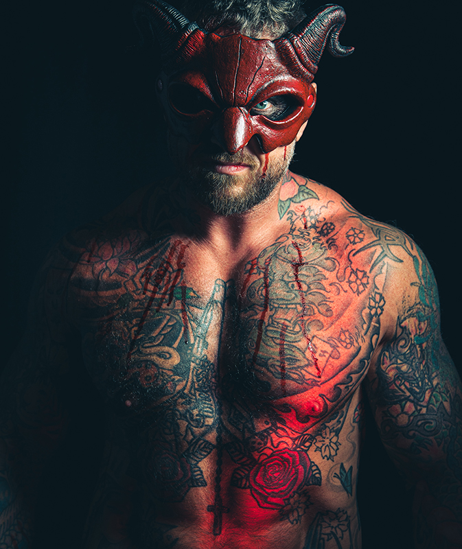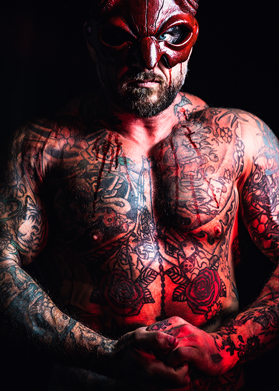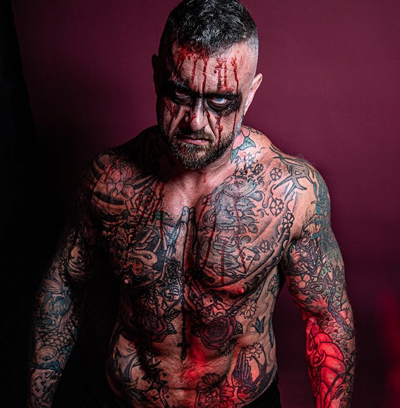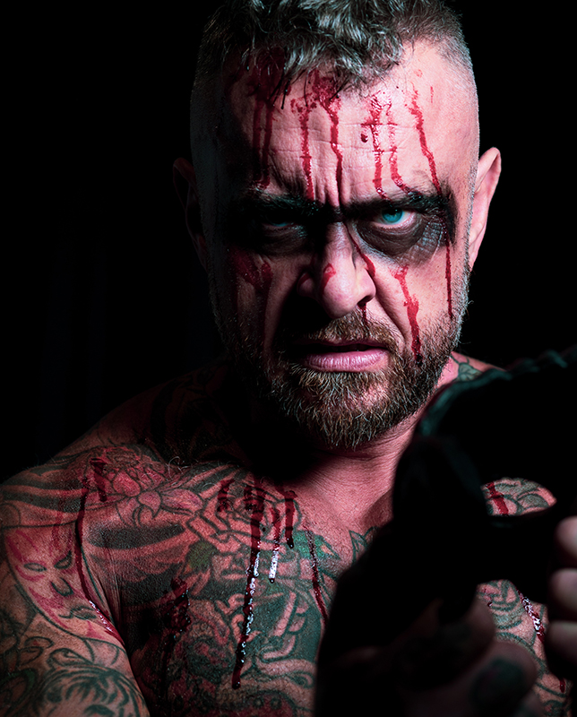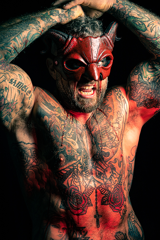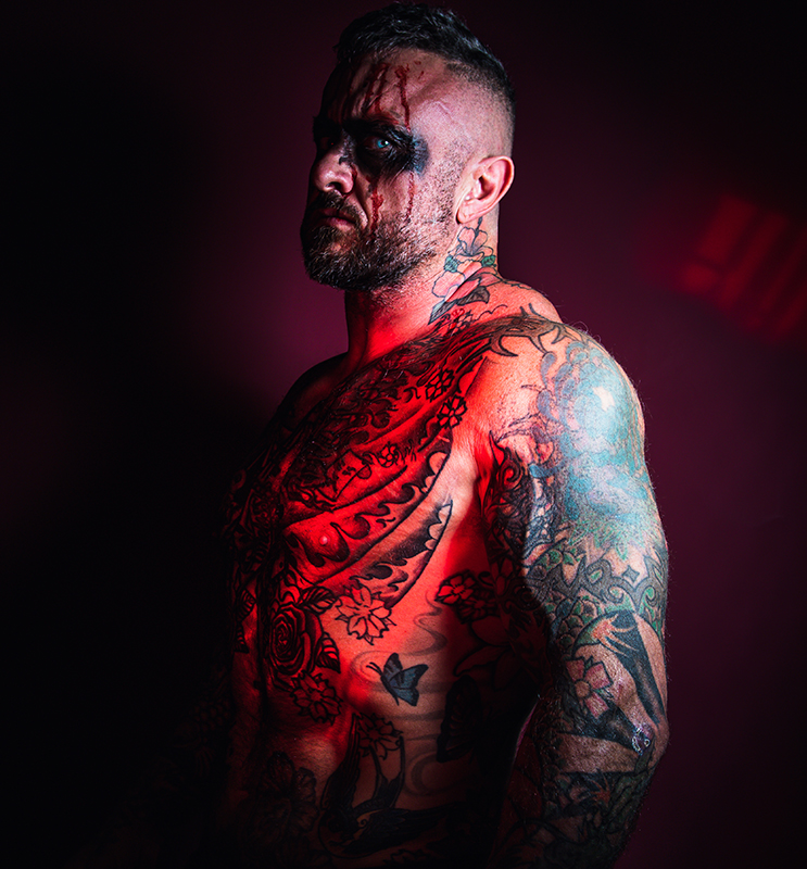 This is my 2nd shoot with Tyson. He is an amazing Professional Wrestler, dog lover, gym nasty. Decided to try modelling and is a total natural. We planned the shoot together, trying a horror gothic theme with added blood and chains. It took place I my home studio.