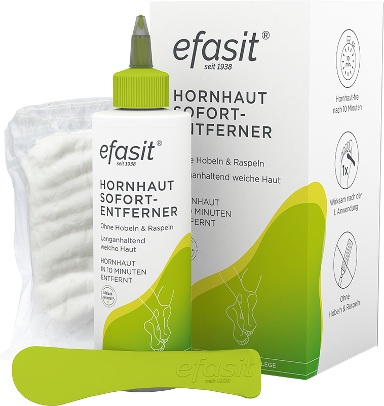 Der efasit Hornhaut Sofort-Entferner ist ein Komplett-Set, das alles enthält, was man für die schnelle und sichere Entfernung von Hornhaut braucht:
