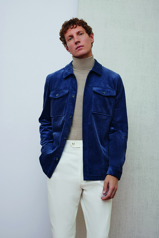 New retro influences bring excitement to classic segments through colors, patterns, and combinations. Cognac, brown, and tobacco in warm tones are crucial, as well as corduroy and denim. Overshirts become more voluminous and sometimes boxier in silhouette.