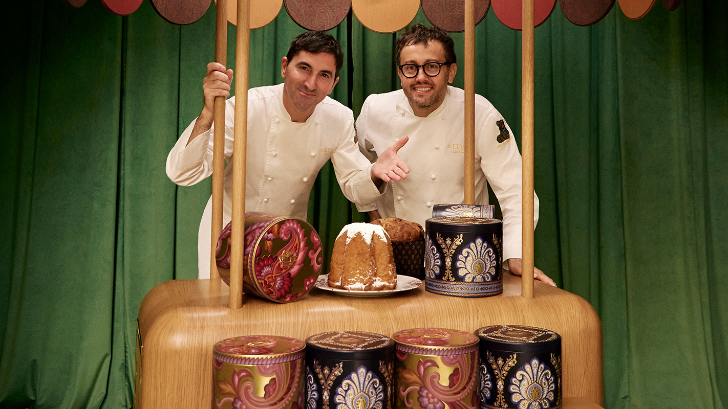 In the festive show, the performers from Etro’s theatre company feature Ethiopian-Italian soprano Mariam Battistelli, who enchants with “Musetta’s Waltz” from La Bohème; circus artist Louisa Ganzel; ballet dancer Tang Yi; card magician Sir Nick; drummer Luigi Bianco; and violinist Ragnheidur; They are joined by chefs Alessandro Negrini and Fabio Pisani, the masterminds behind the panettone and pandoro in collaboration with Aimo e Nadia Milano.