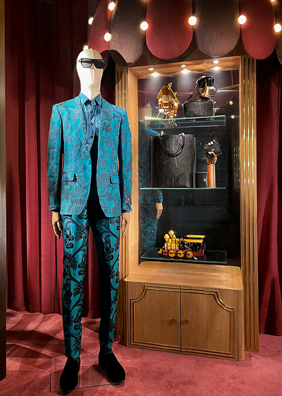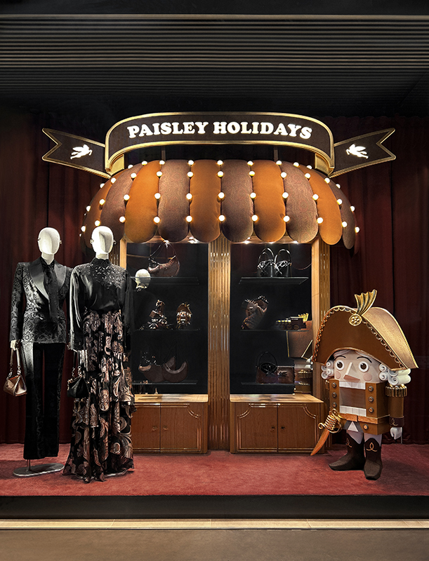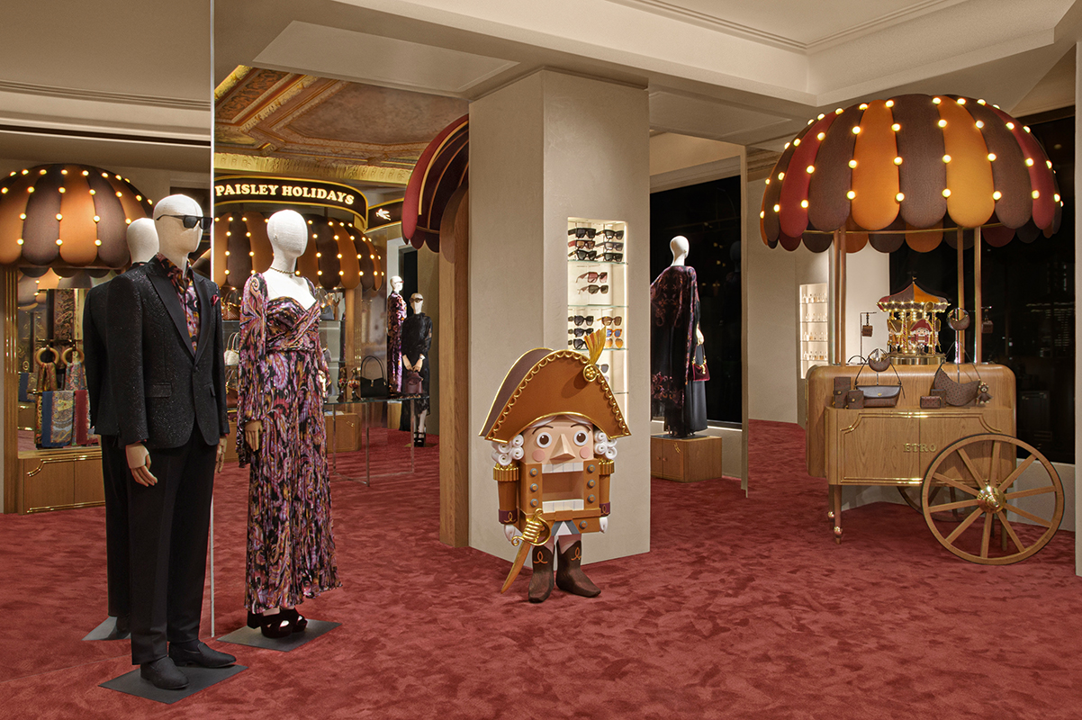 The playful and enchanting spirit of Paisley Holidays is brought to life in themed displays at Etro pop-ups and boutiques in major cities around the world throughout the holiday season.