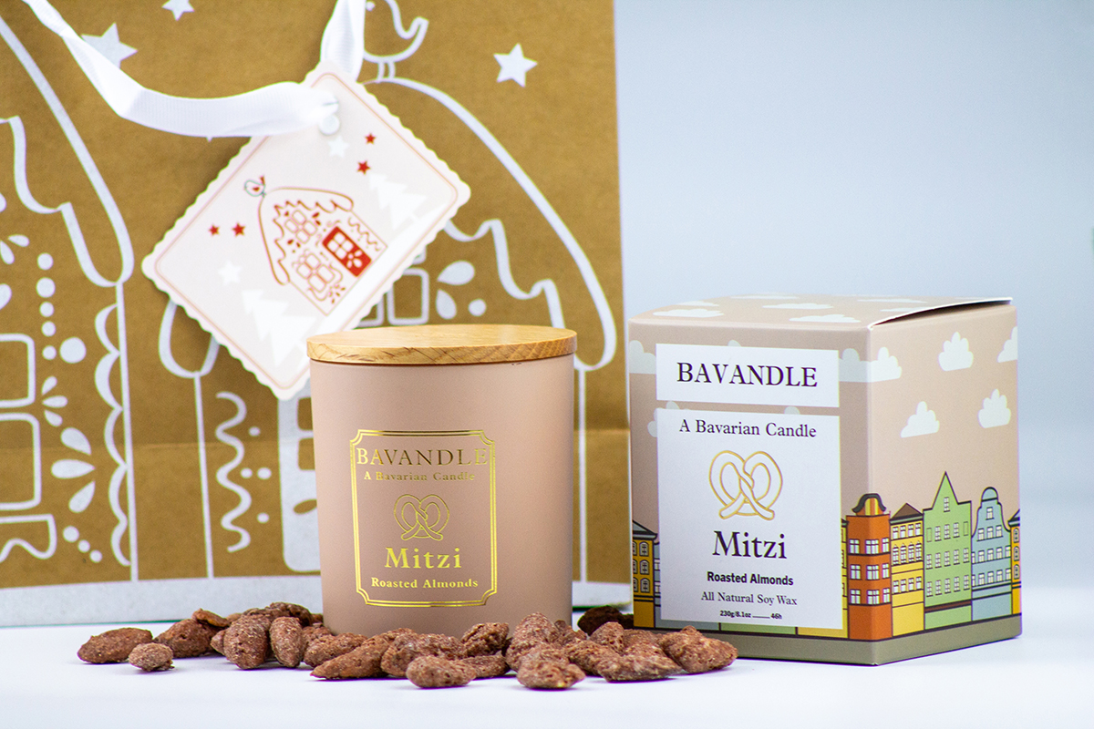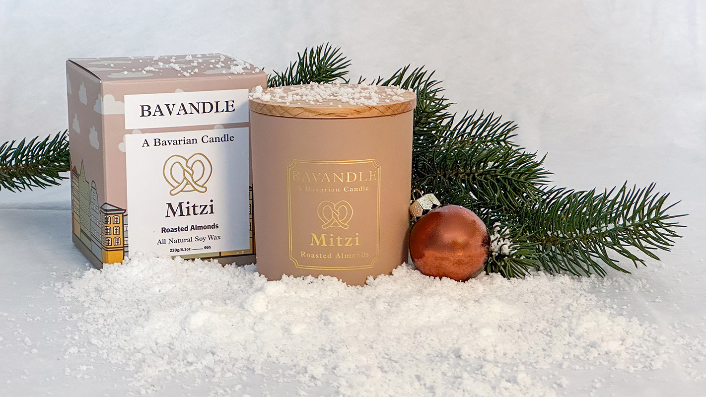 Liebevoll verarbeitet, präsentiert in edlen Gläsern mit goldener Beschriftung, Holzdeckeln mit einer Gravur aus verspielter Brezel-Optik und eingehüllt in optisch passende Kartons mit regionalen Designelementen, sind die Bavandle-Duftkerzen “Mitzi” und “Zepp” ein echter Hingucker und versüßen mit ihren Düften die schönste Zeit des Jahres.